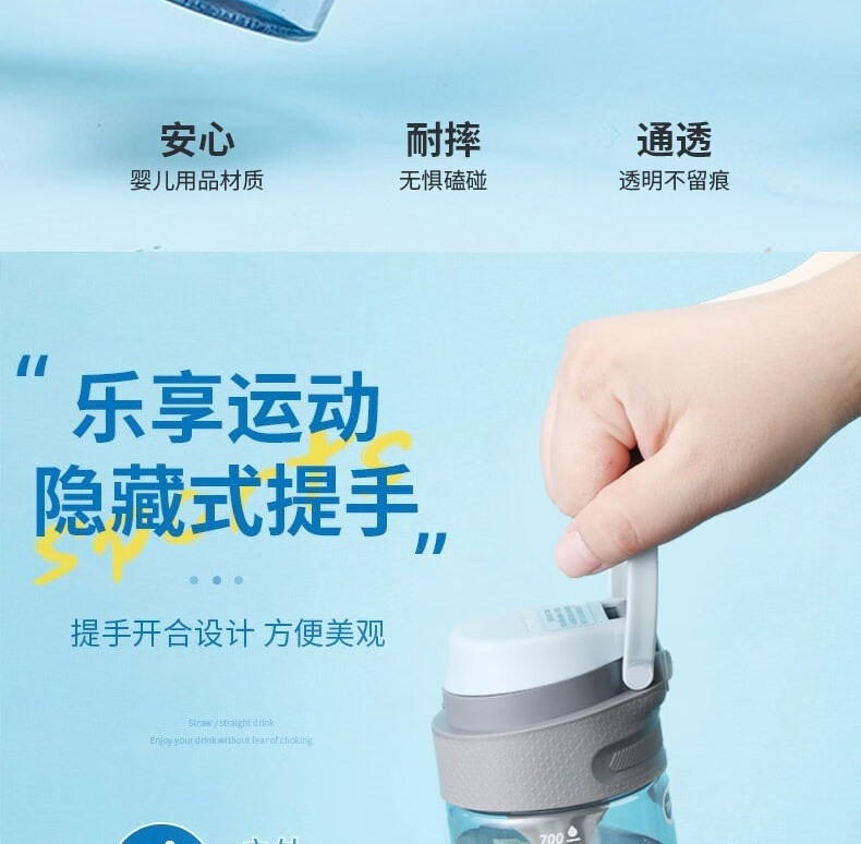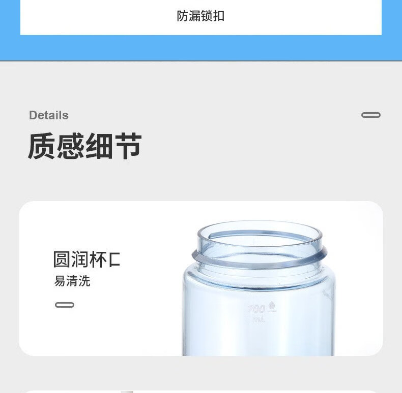 乐扣乐扣(locknlock)塑料杯大容量运动骑行旅行方便携带大容量水杯儿童杯子 ABF765GRY灰色 750ml 1个