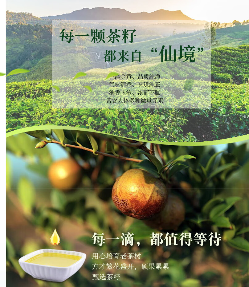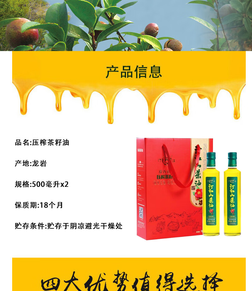 汀江山茶籽油食用物理压榨原味无添加瓶装礼盒500ml*2礼盒装送礼