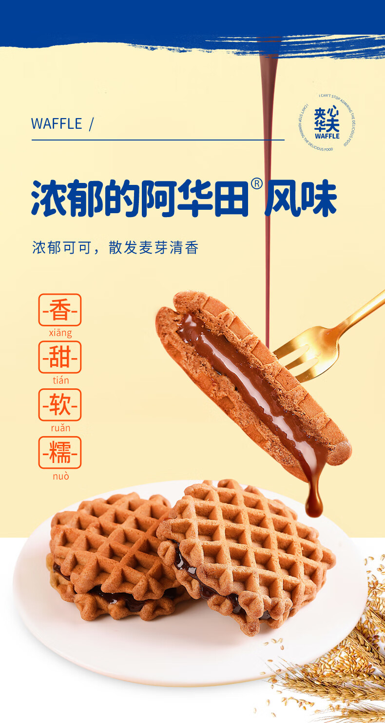 满格华夫阿华田夹心华夫饼 休闲零食早餐面包糕点蛋糕代餐饱腹速食品整箱 【1箱】肉松夹心华夫饼 340g