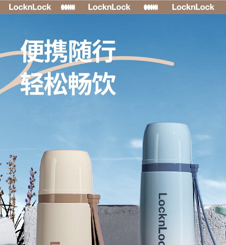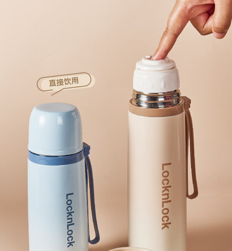 乐扣乐扣(locknlock)保温保冷密封防漏一键开启便携提手保温杯高颜值办公室通勤水杯 渐咖 500ml LHC6791FU