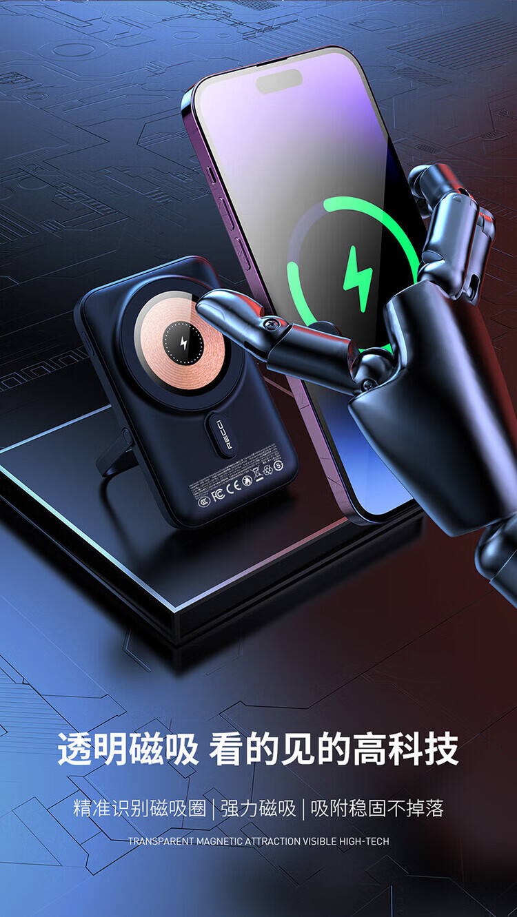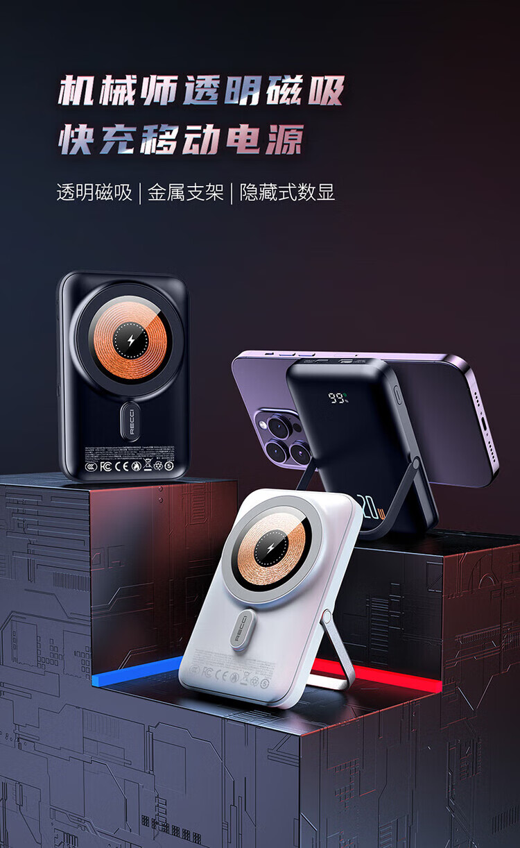 RECCI锐思RPB-W08C移动电源磁吸充电宝一万毫安机械师PD22.5W+20W 白色