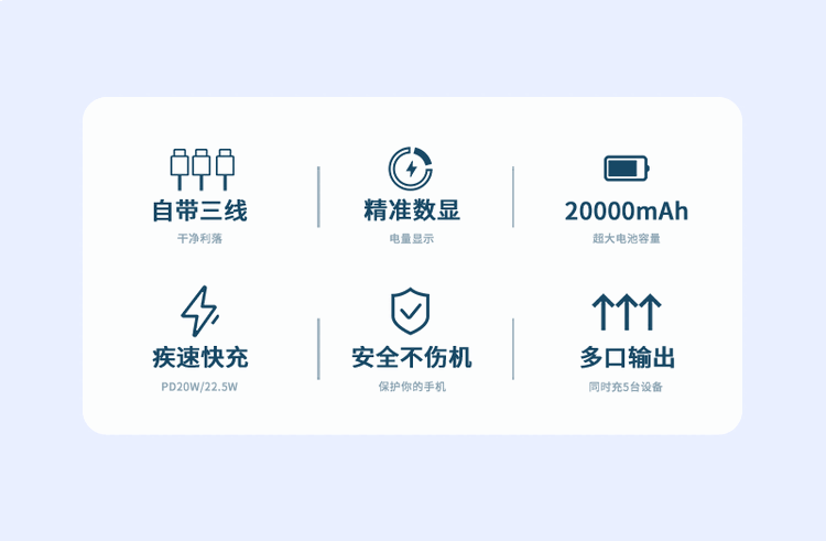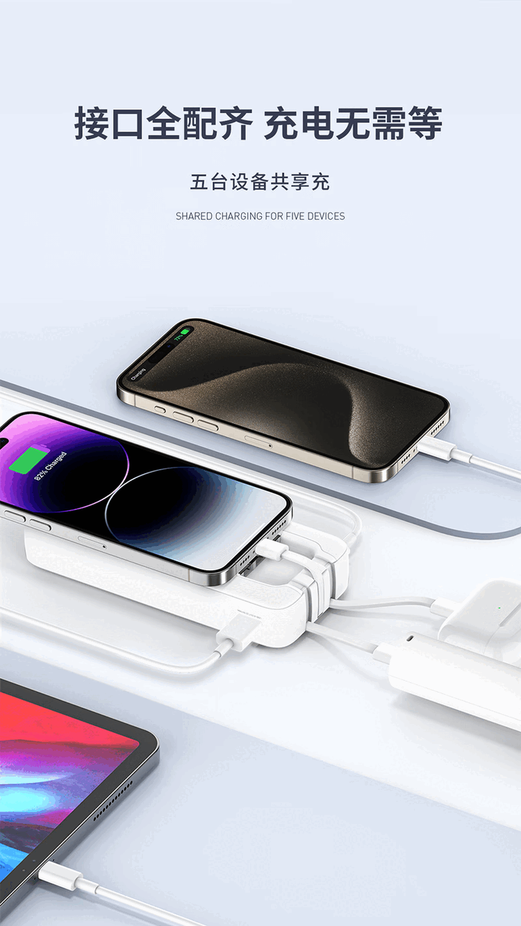 RECCI锐思RPB-N46/N45充电宝22.5W+PD20W自带线20000mAh可支持苹果 10000毫安