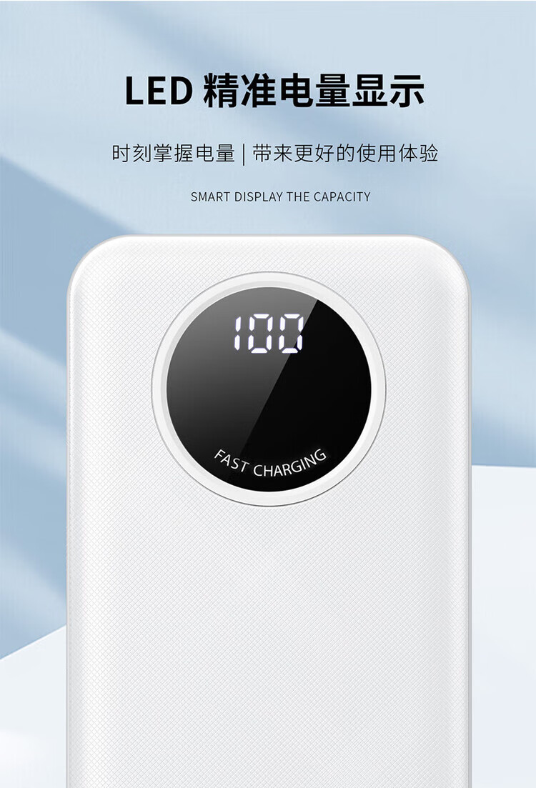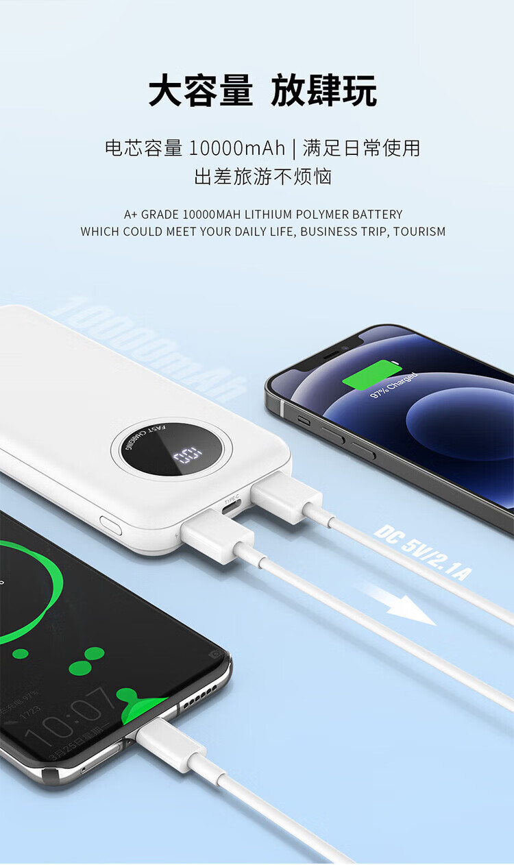 RECCI锐思 RP01移动电源自带线Lightning+Type- USB口充电宝 白色 10000毫安