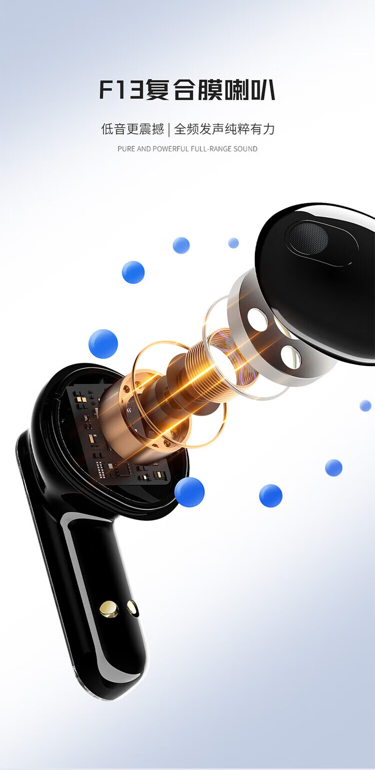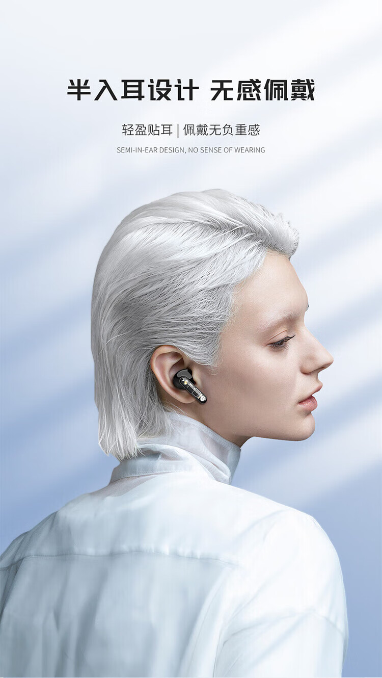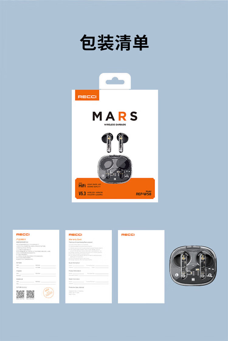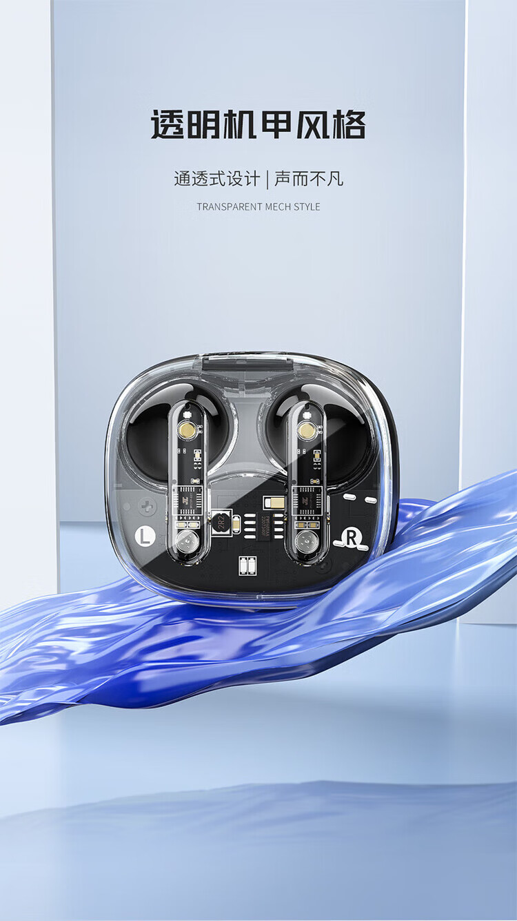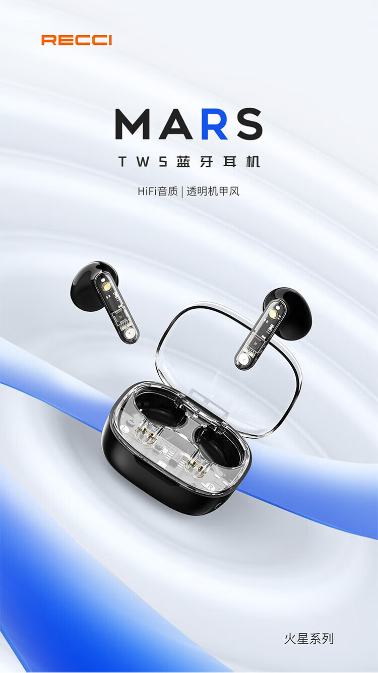 RECCI锐思(Recci)REP-W58半入耳设计无感佩戴复合膜喇叭HIFI无损音质高清通话透明机甲风格蓝牙耳机