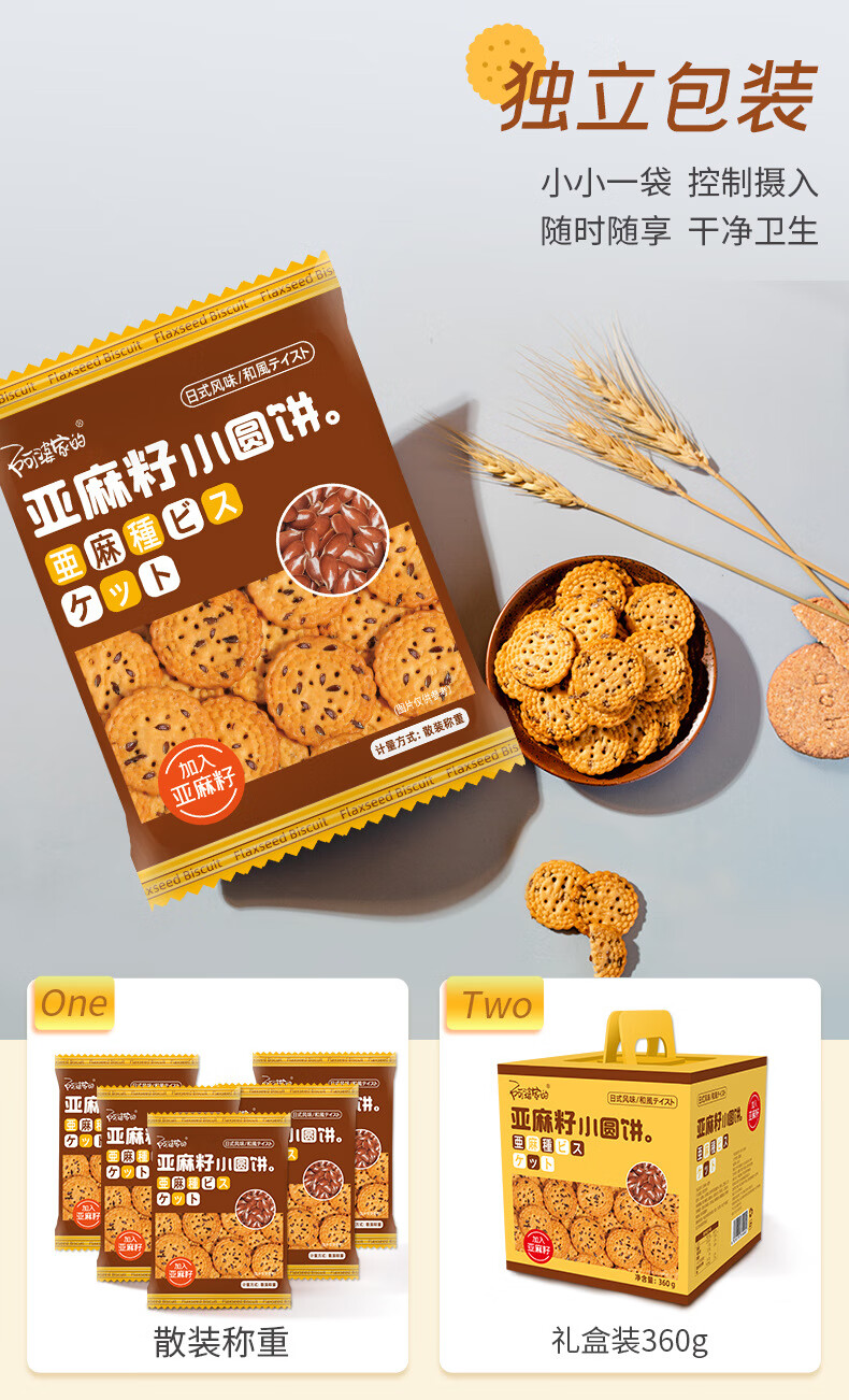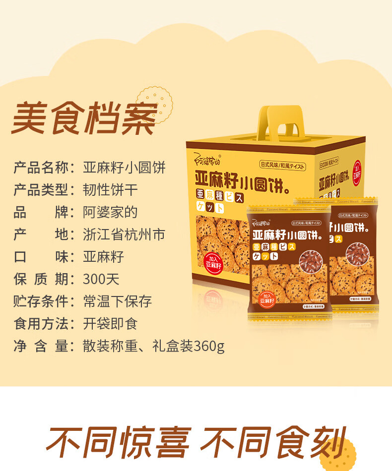阿婆家的日式海盐小圆饼礼盒饼干网红休闲小零食品大礼包 亚麻籽小圆饼【手提礼盒装】 360g