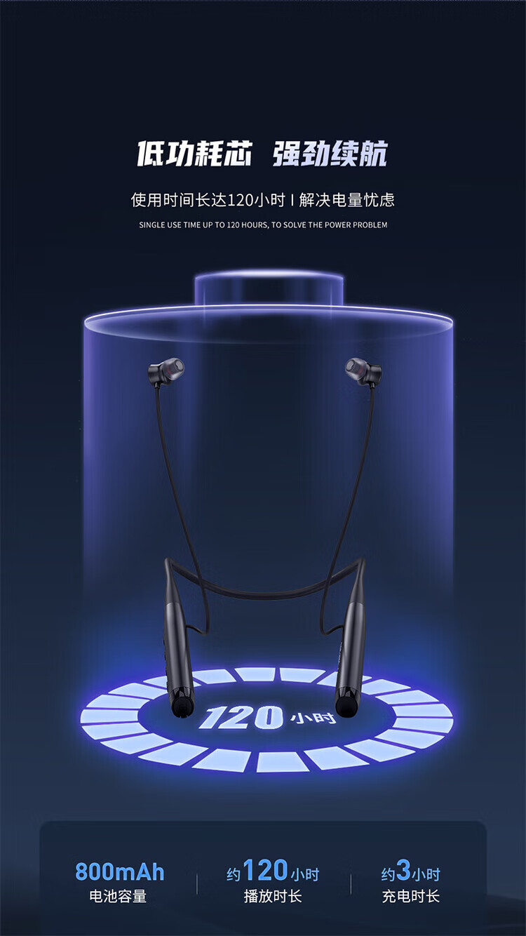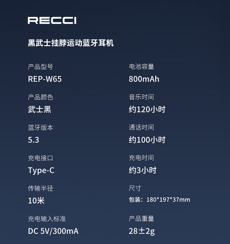 RECCI锐思REP-W65黑武士无线蓝牙耳机跑步运动超长续航HiFi高清音质头戴式适用苹果华为安卓