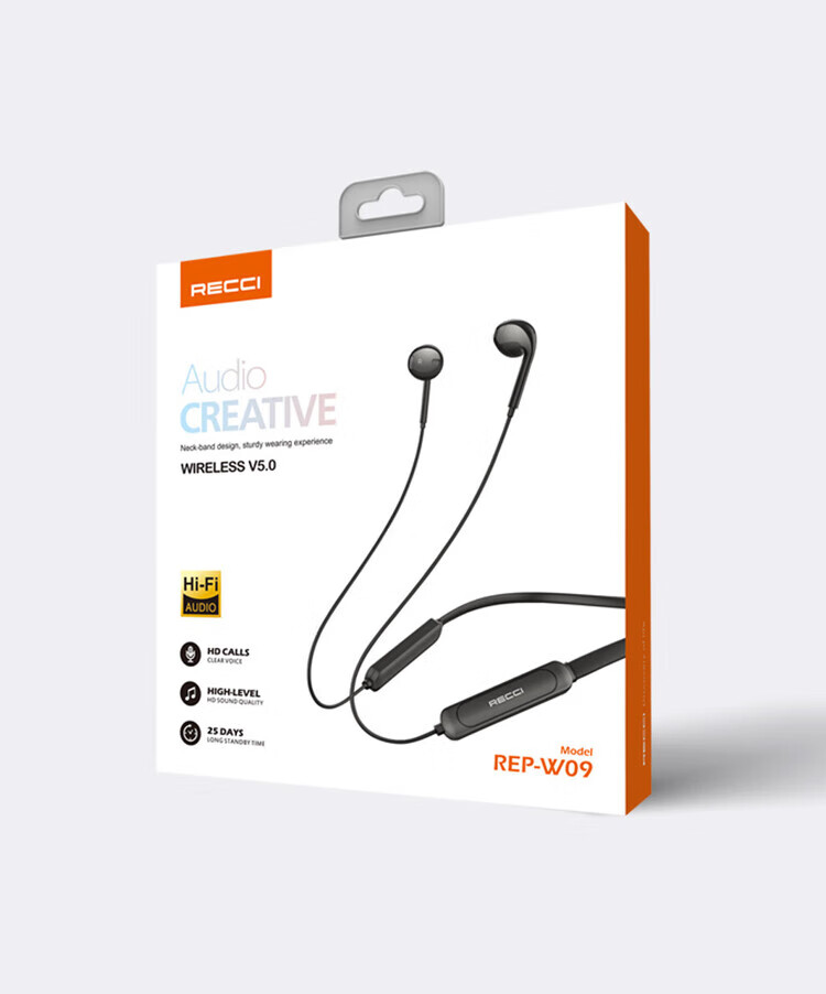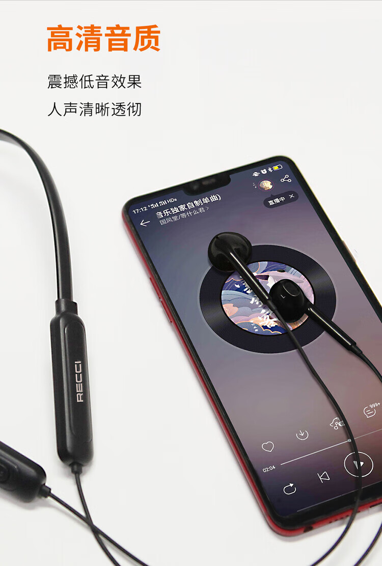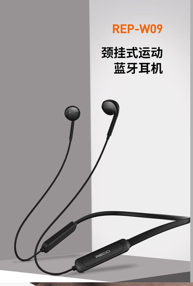 RECCI锐思云歌REP-W09无线运动蓝牙耳机跑步双耳入耳式耳塞颈挂脖式适用于iPhone手机苹果华为安卓 黑色