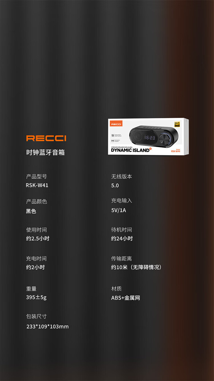 RECCI锐思RSK-W41蓝牙音箱户外便携音响TF卡音乐播放通用