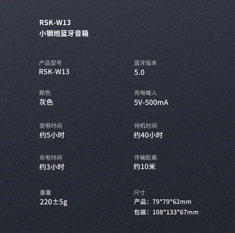 RECCI锐思(Recci) 锐思RECCI小钢炮RSK-W13蓝牙音箱超长持航高清音质 黑色