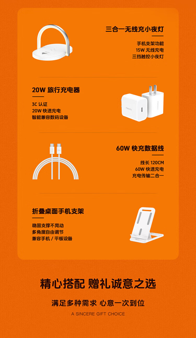 RECCI锐思RG07手机无线充带灯+充电头