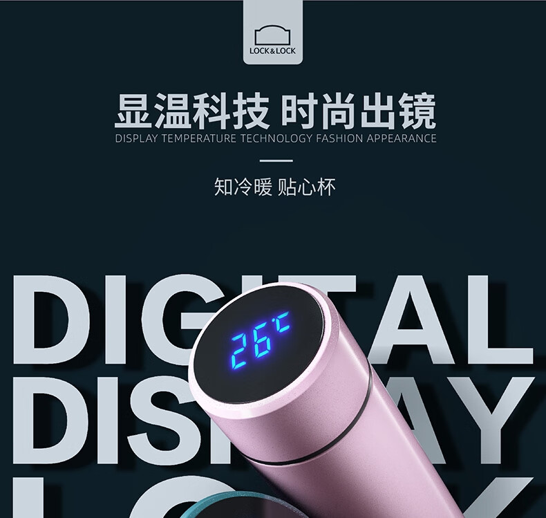 乐扣乐扣(locknlock)保温保冷智能芯片触摸感温数显无需充电简约通勤办公室水杯保温杯 粉色 270ml LHC6490FU