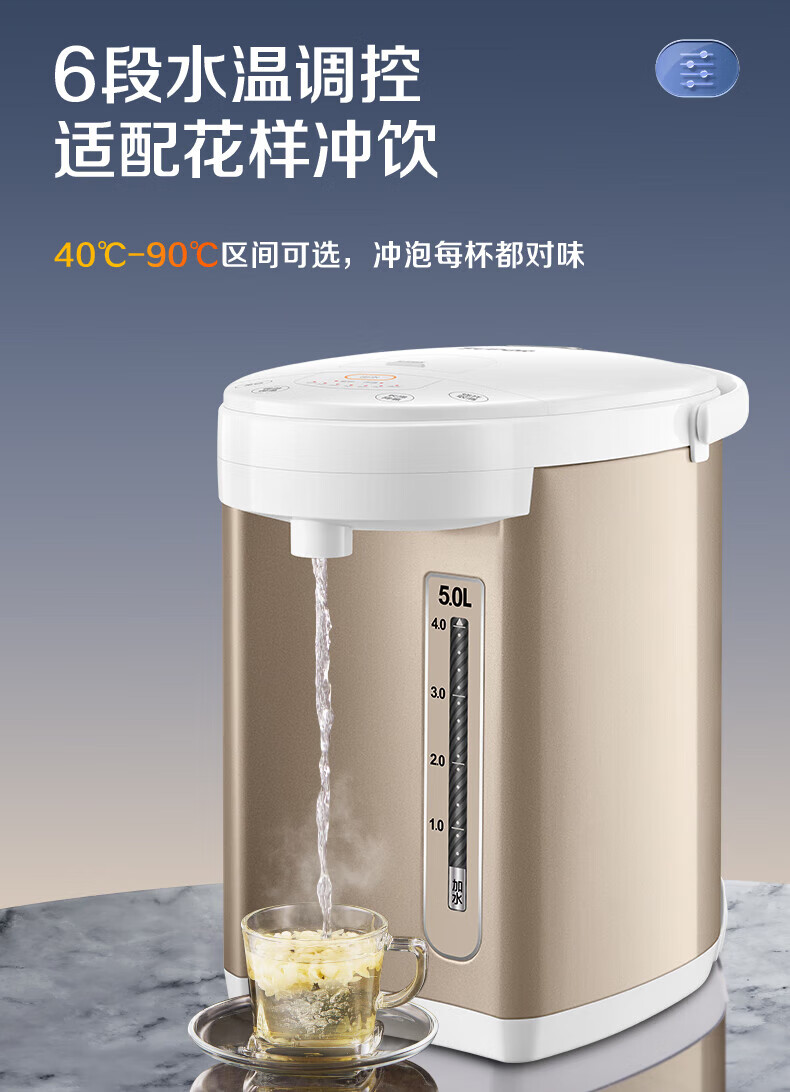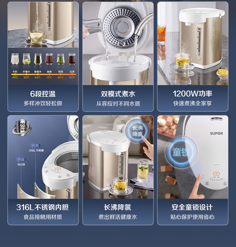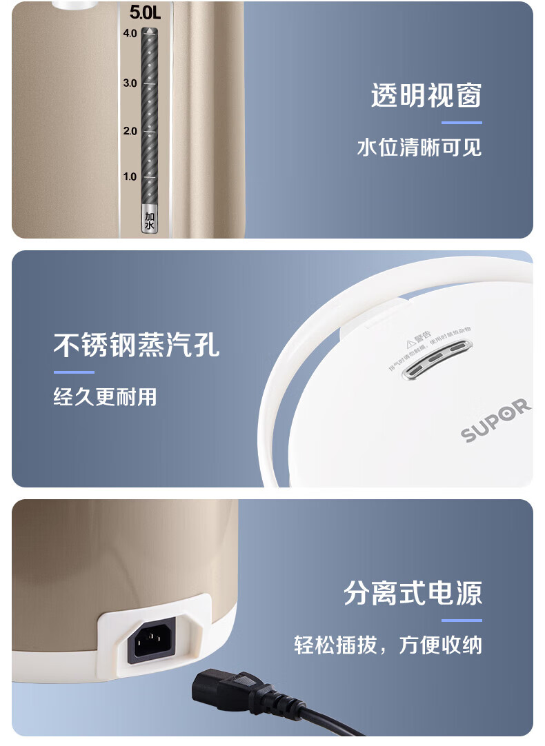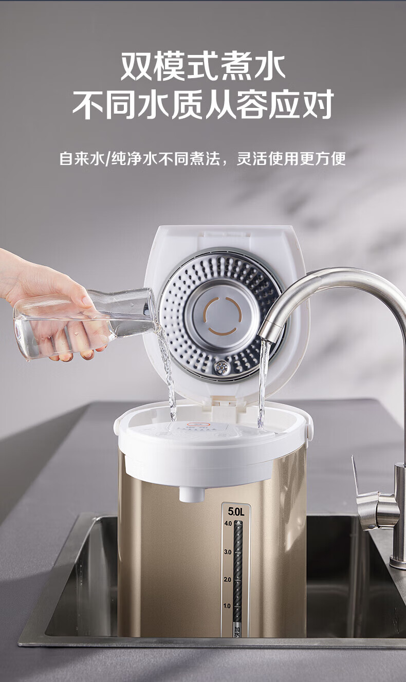 苏泊尔(SUPOR)电热水瓶家用容量316L不锈钢内胆 6段温控保温烧水壶双模式煮水 SW-50S71A 5L