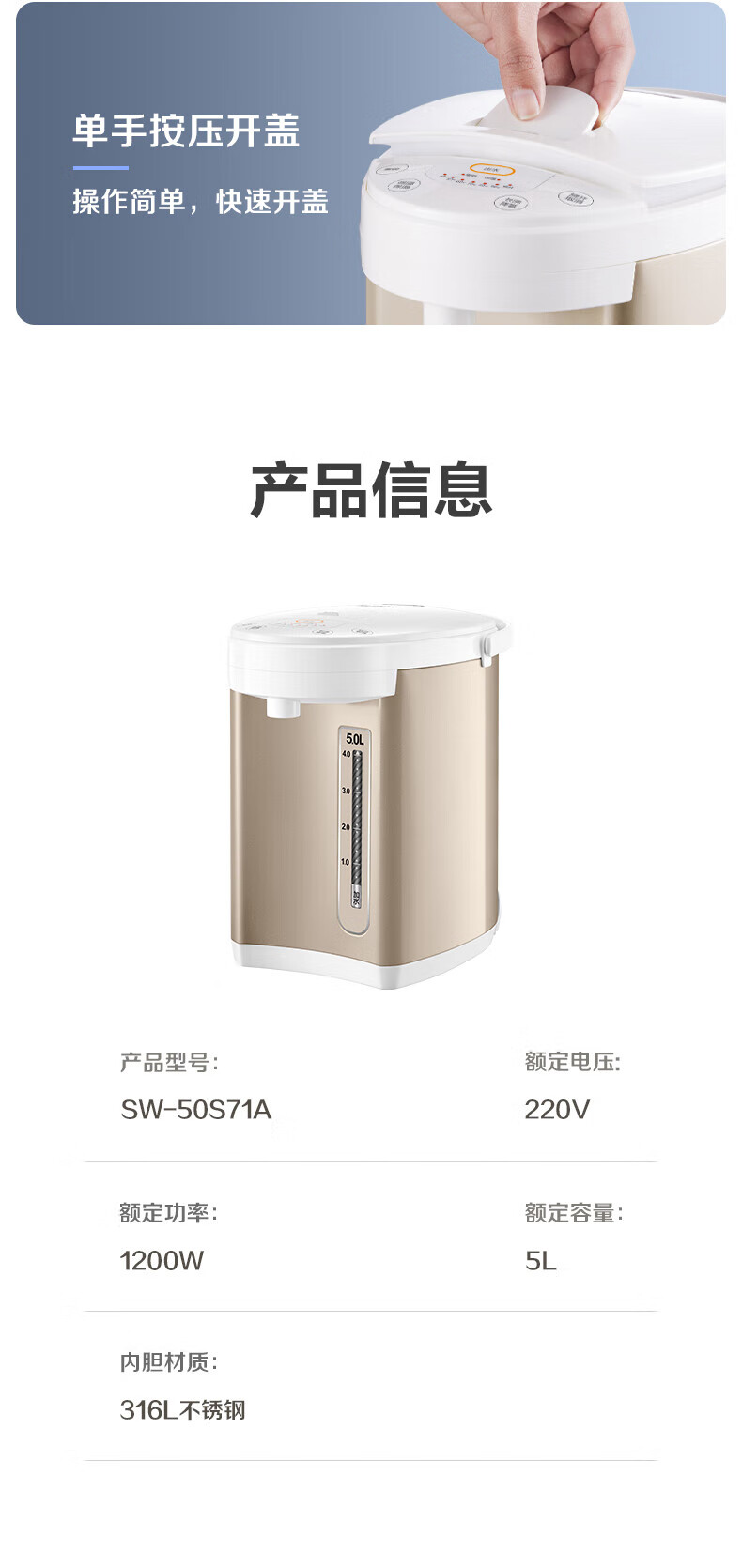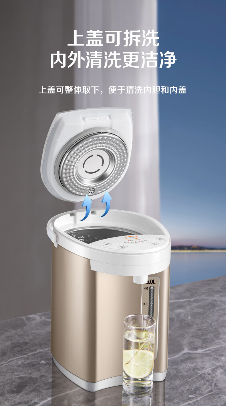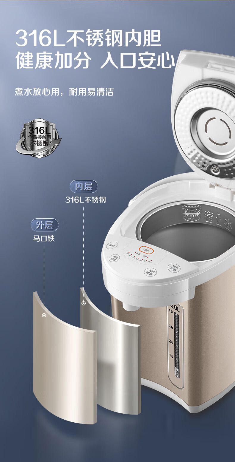 苏泊尔(SUPOR)电热水瓶家用容量316L不锈钢内胆 6段温控保温烧水壶双模式煮水 SW-50S71A 5L