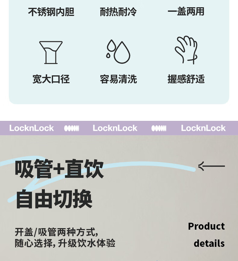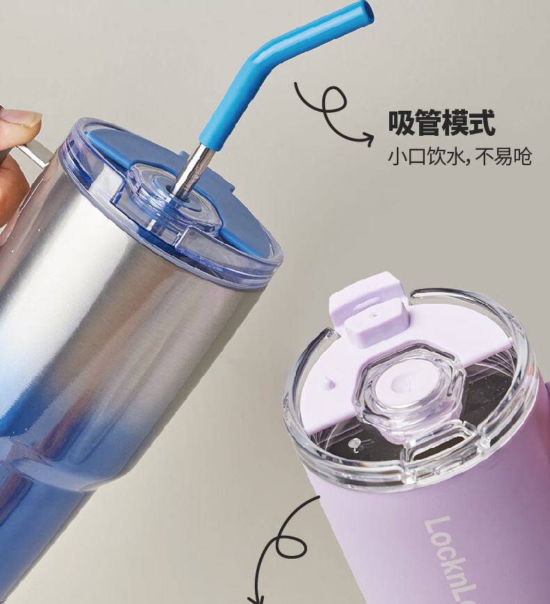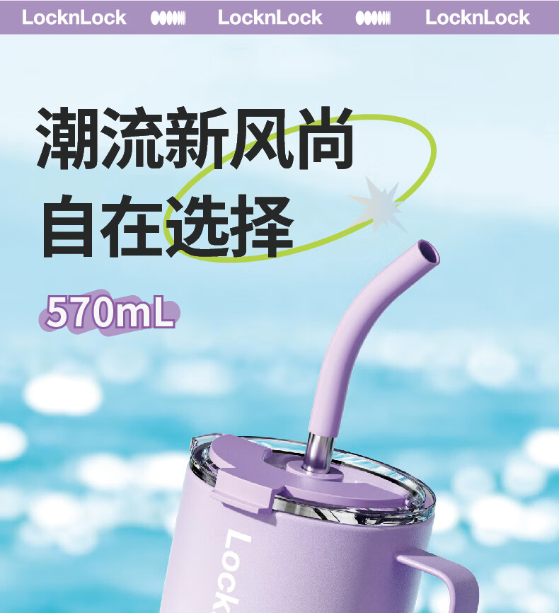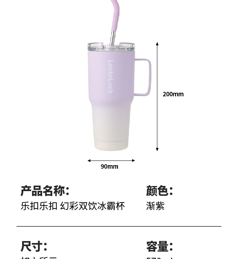 乐扣乐扣(locknlock)幻彩双饮冰霸杯宽大口径易清洁不锈钢内胆大容量高颜值办公室水杯 紫色 570ml LHC6796FU