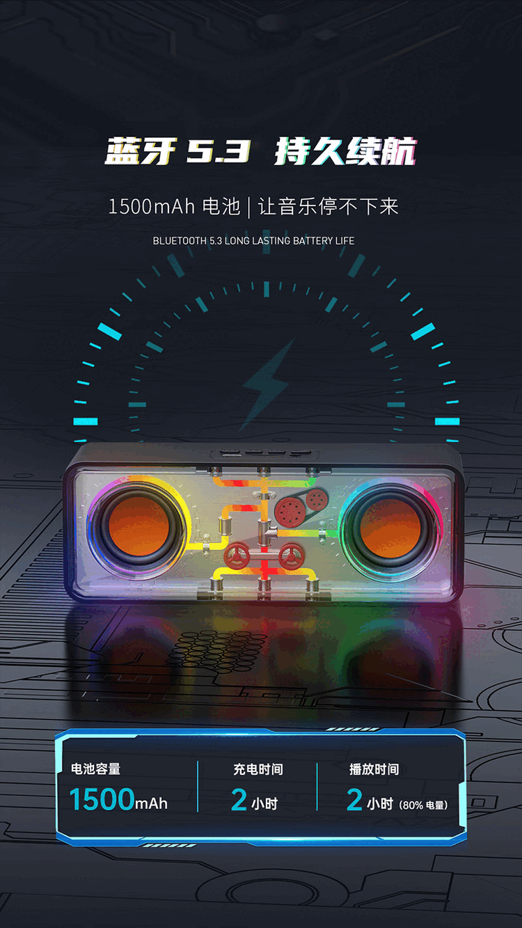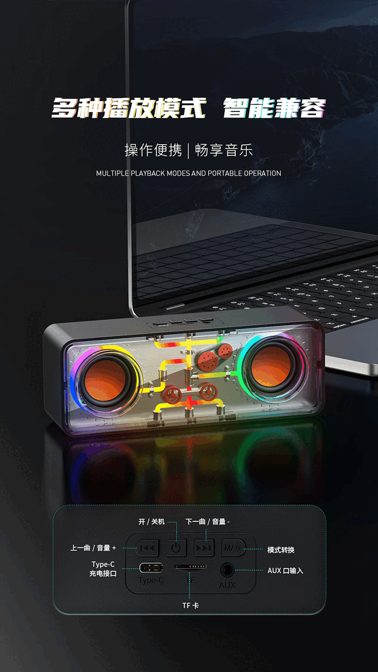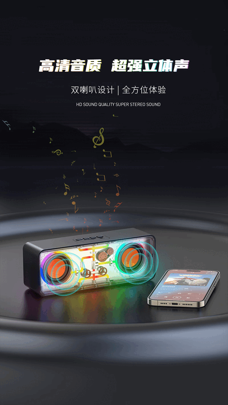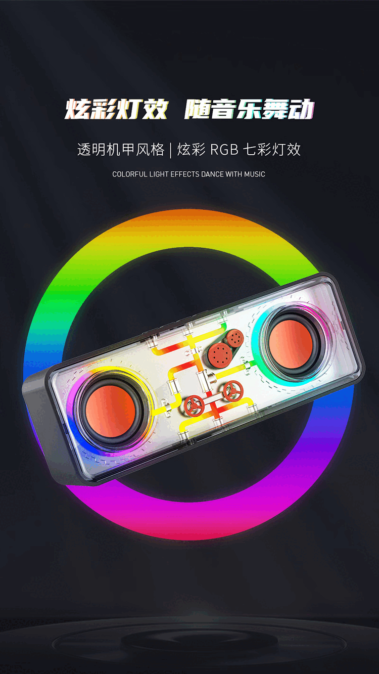 RECCI锐思RSK-W38 HIFi音质炫彩RGB七彩灯效随音乐舞动双喇叭设计超强立体声蓝牙音箱 黑色