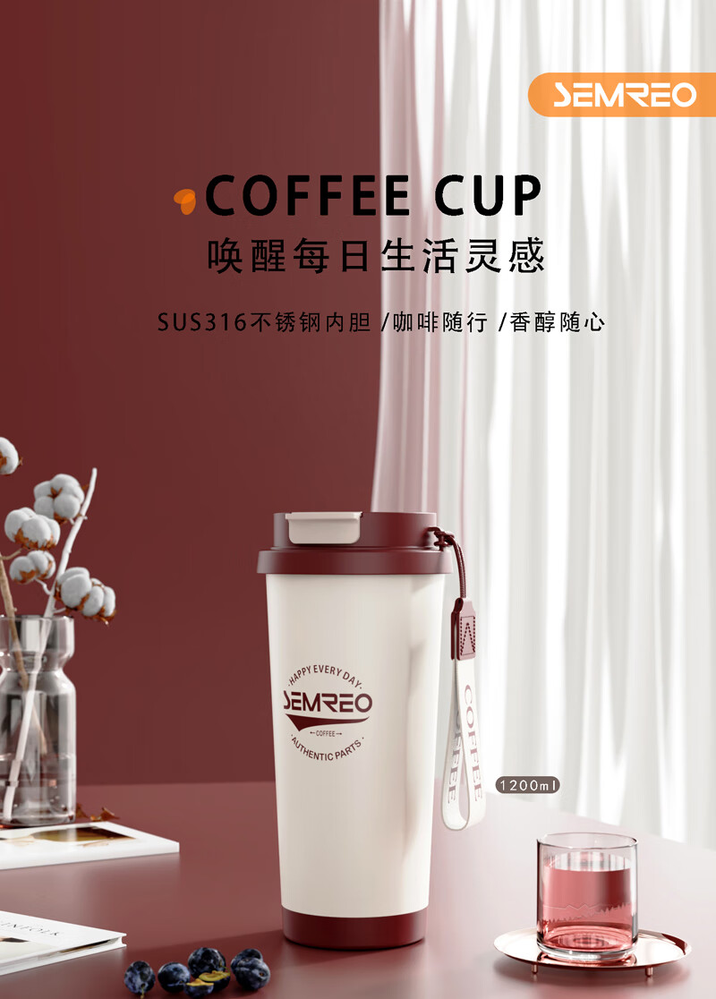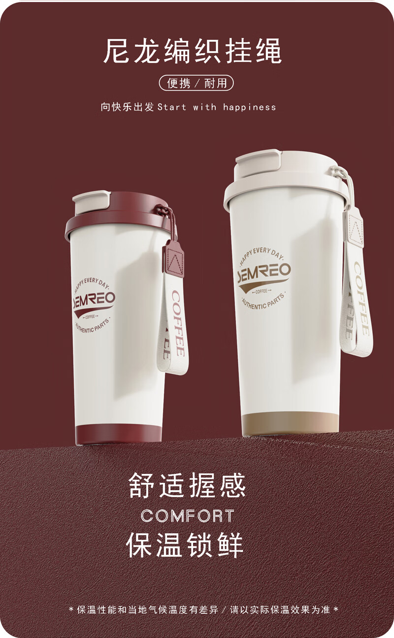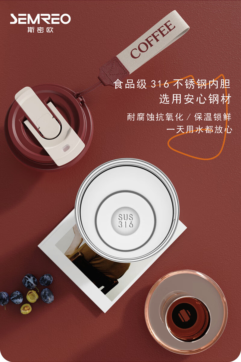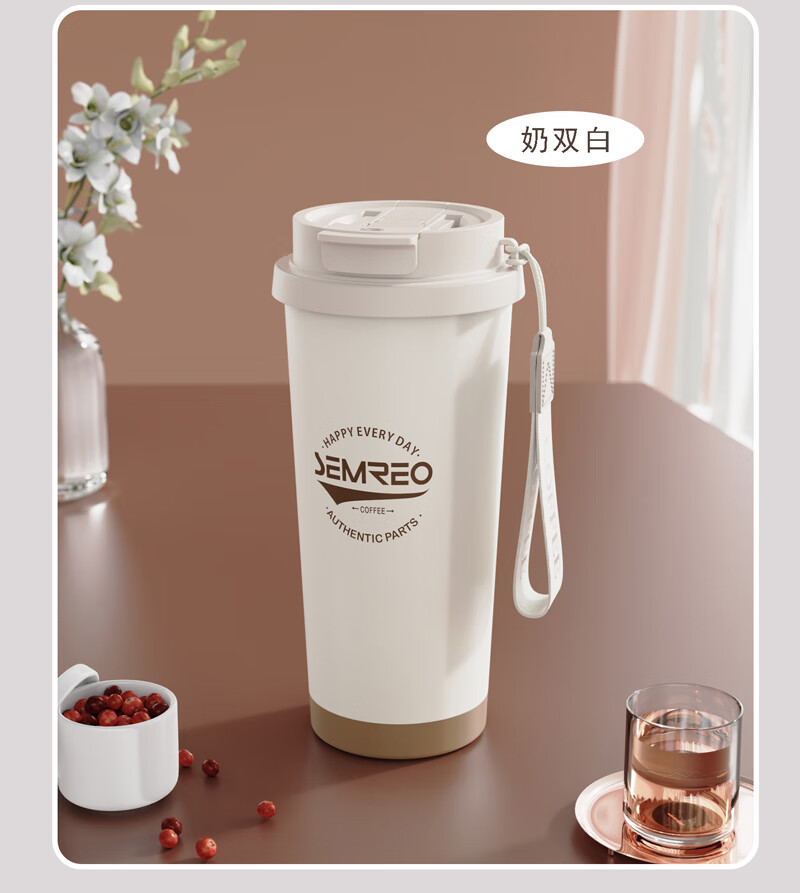 斯密欧保温杯咖啡杯女便携水杯男大容量316双层不锈钢带提绳 象牙白 520ml 个 单内盖