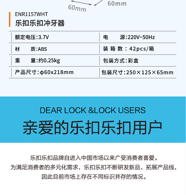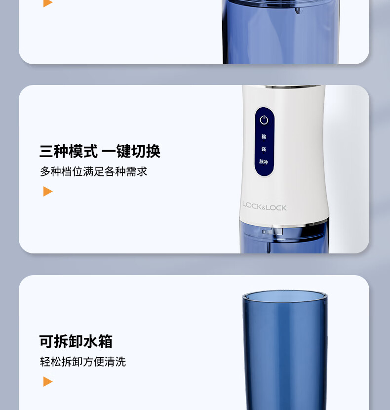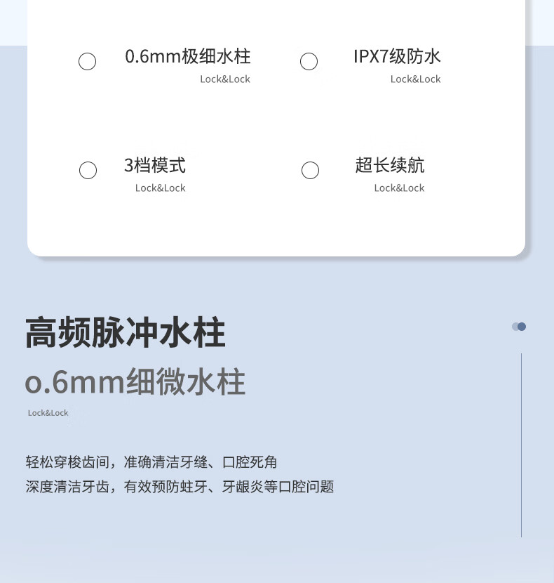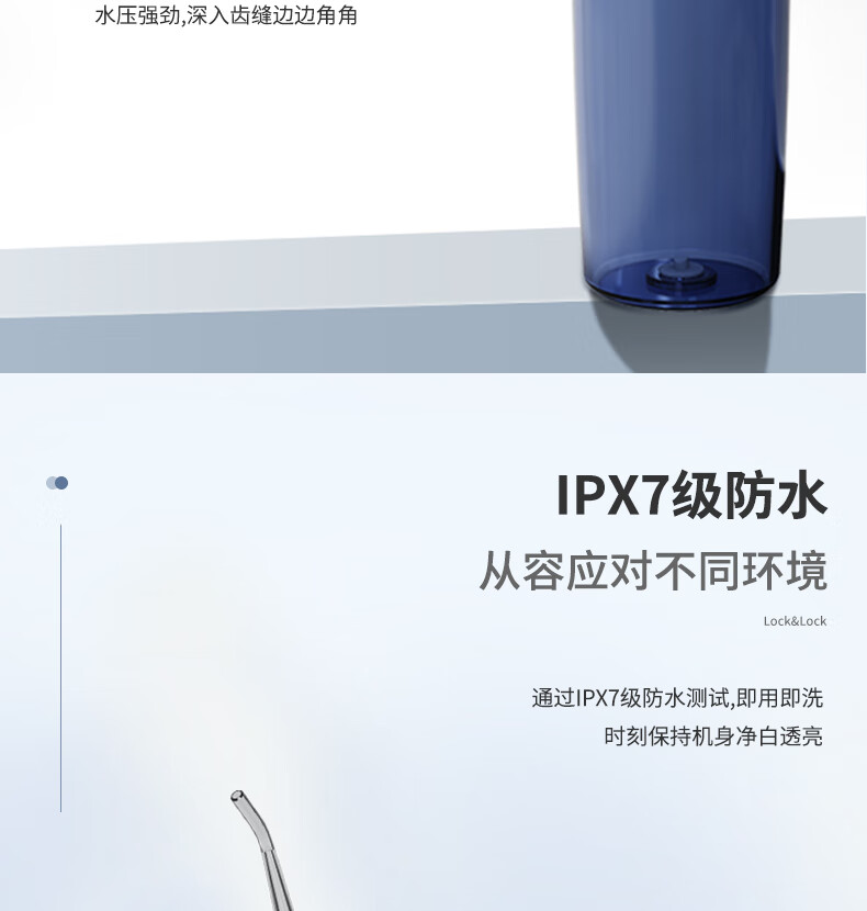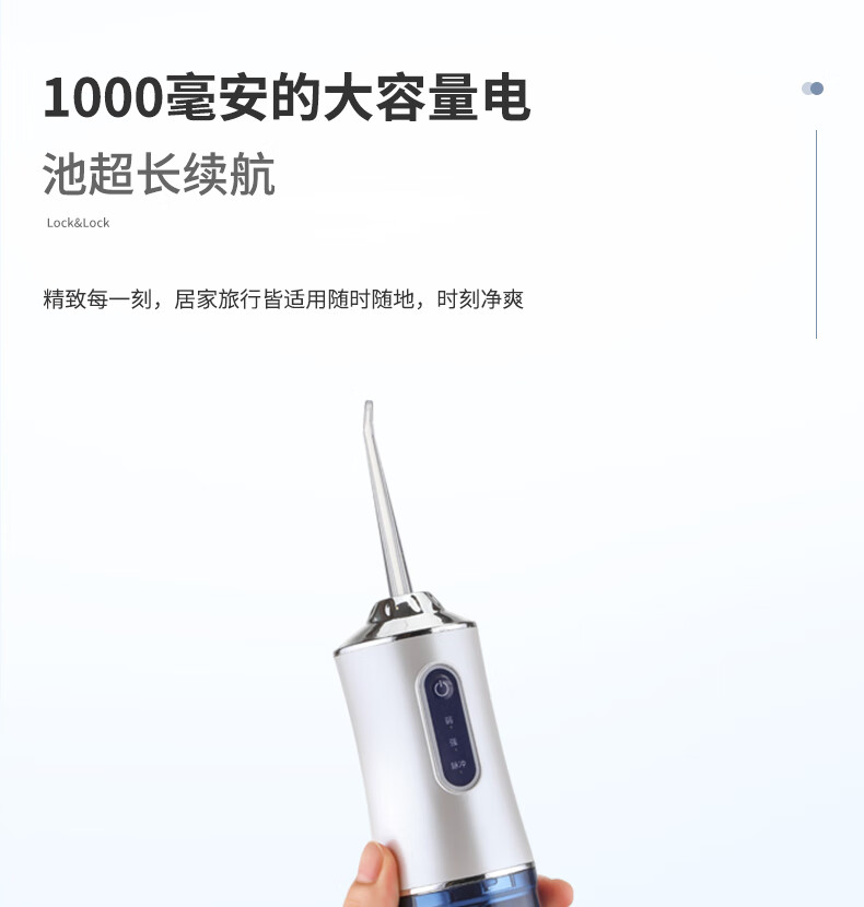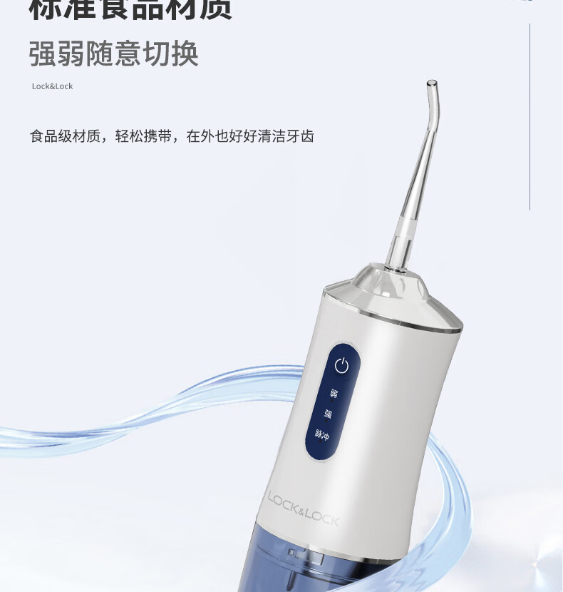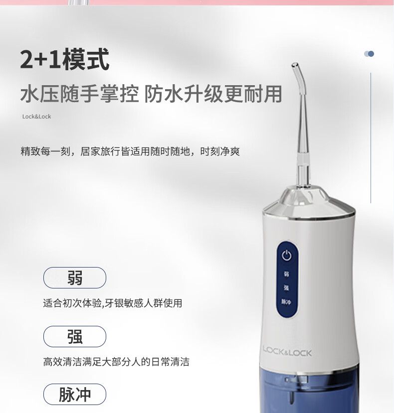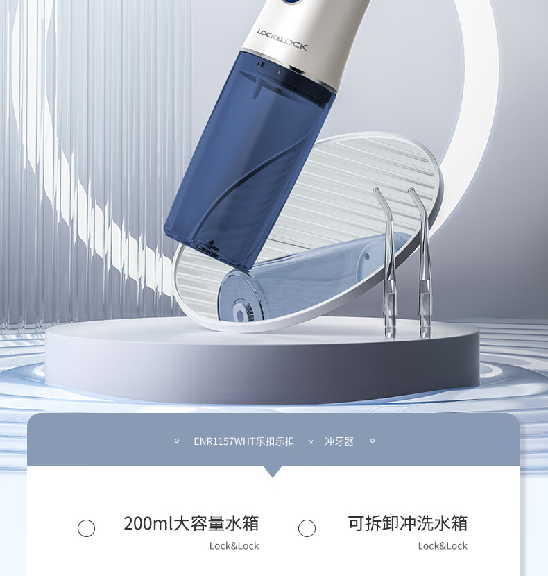 乐扣乐扣(locknlock)三种模式200ml大容量水箱冲牙器超长续航USB充电便于携带IPX7级防水白色DC5V送礼推荐ENR1157