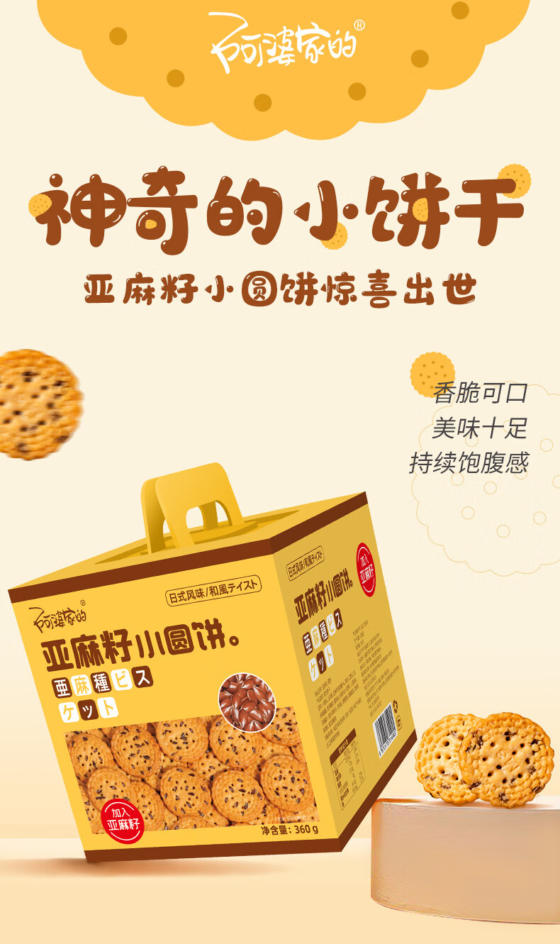 阿婆家的【新款阿婆家的日式亚麻籽小圆饼干网红休闲小零食品 亚麻籽小圆饼【12包】