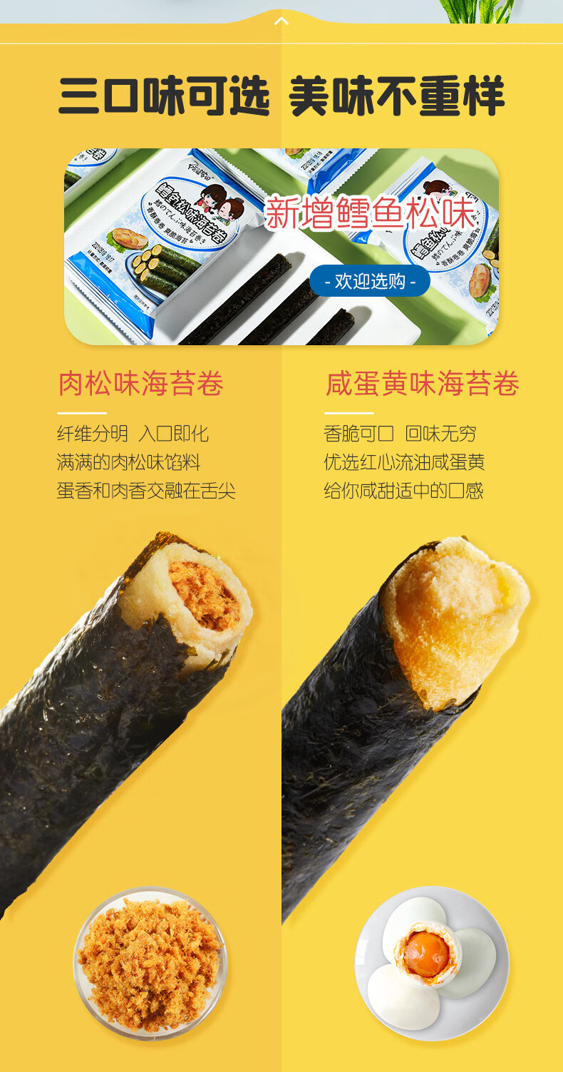 阿婆家的【新款阿婆家的肉松味海苔卷蛋卷肉松味拌饭紫菜碎零食 57g 【散装】*4包(咸蛋黄味