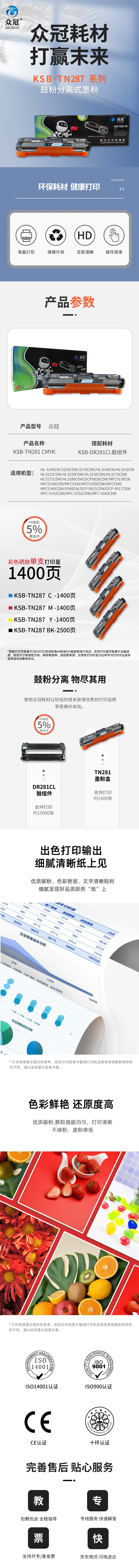 众冠TN281粉盒适用兄弟HL-3140CW碳粉3150 3170CDN粉盒9340CDW硒鼓 TN281 黑色粉盒 众冠硒鼓TN281C 蓝