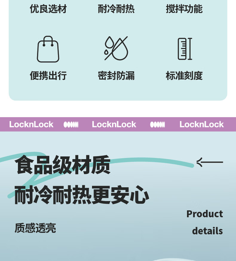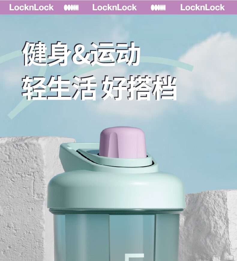 乐扣乐扣(locknlock)运动摇摇杯蓝色560ml便携密封防漏标准刻度高颜值水杯HAP537MITFU