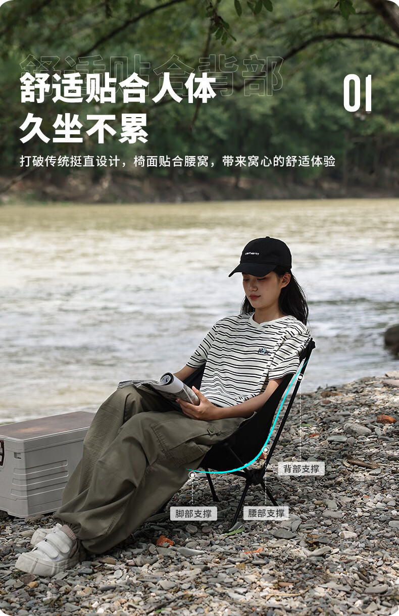 狼行者 户外折叠椅子露营便携钓鱼凳超轻休闲月亮椅靠背美术生小马扎 绿色