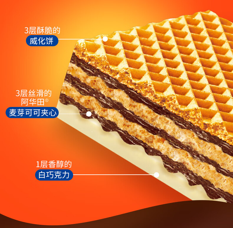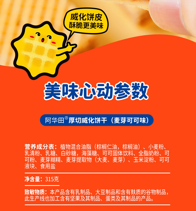 满格华夫阿华田七层厚切威化饼干315g休闲小零食营养早餐整箱 阿华田威化饼315g【2箱约30包】