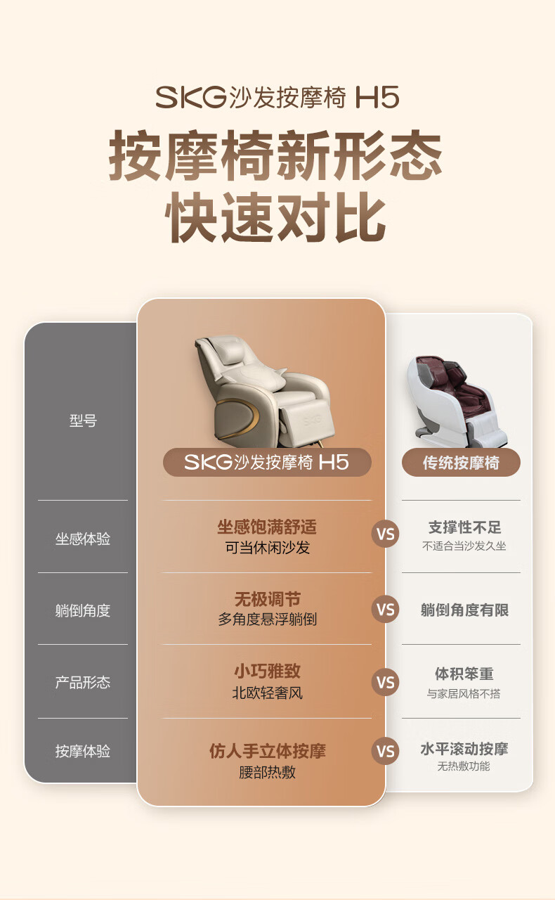 SKG按摩椅家用全身按摩太空舱揉捏颈肩腰背腿足部热敷电动沙发 520情人节礼物送男女朋友老婆高档礼品 H5沙发按摩椅