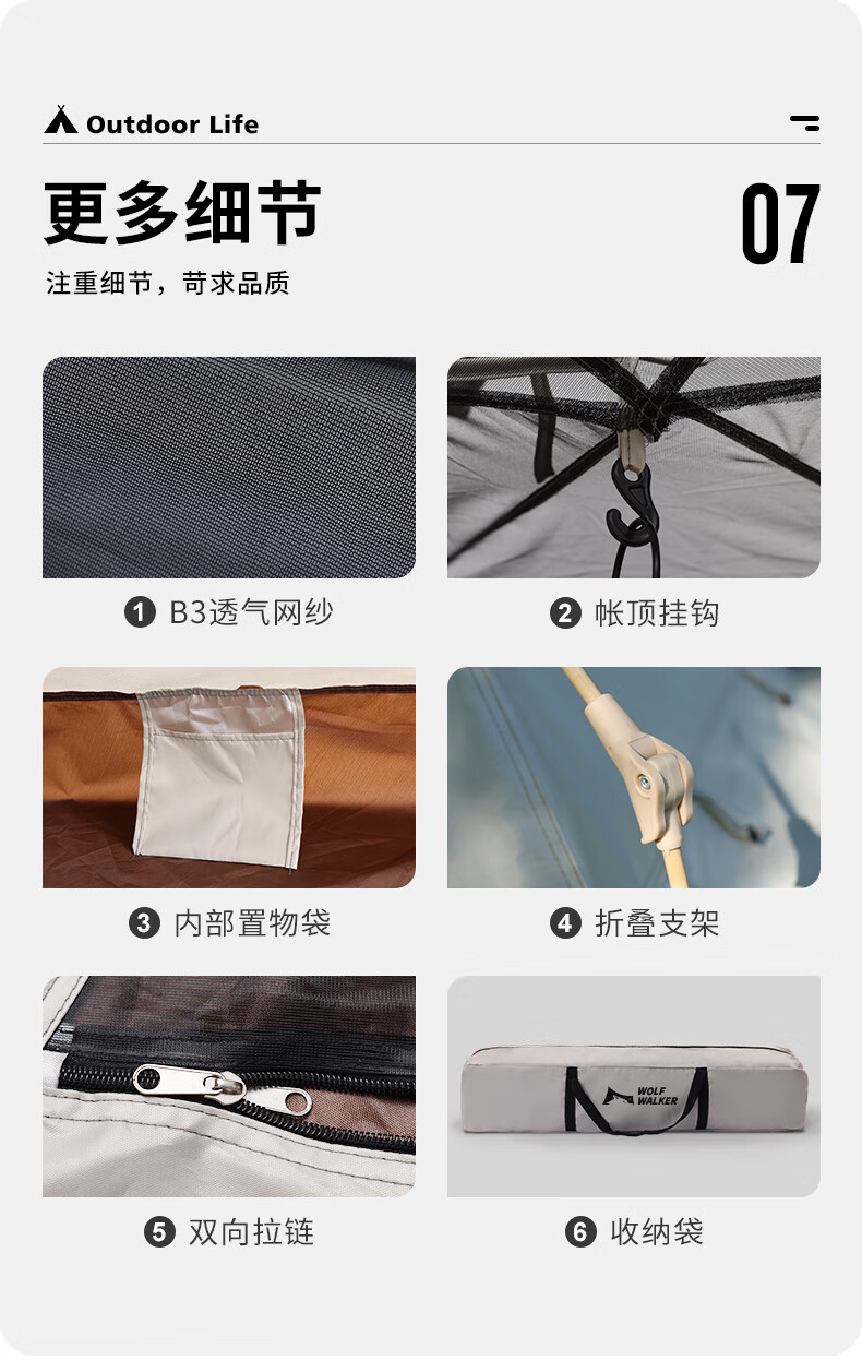 狼行者狼行者自动折叠六角帐篷户外露营便携式野营装备