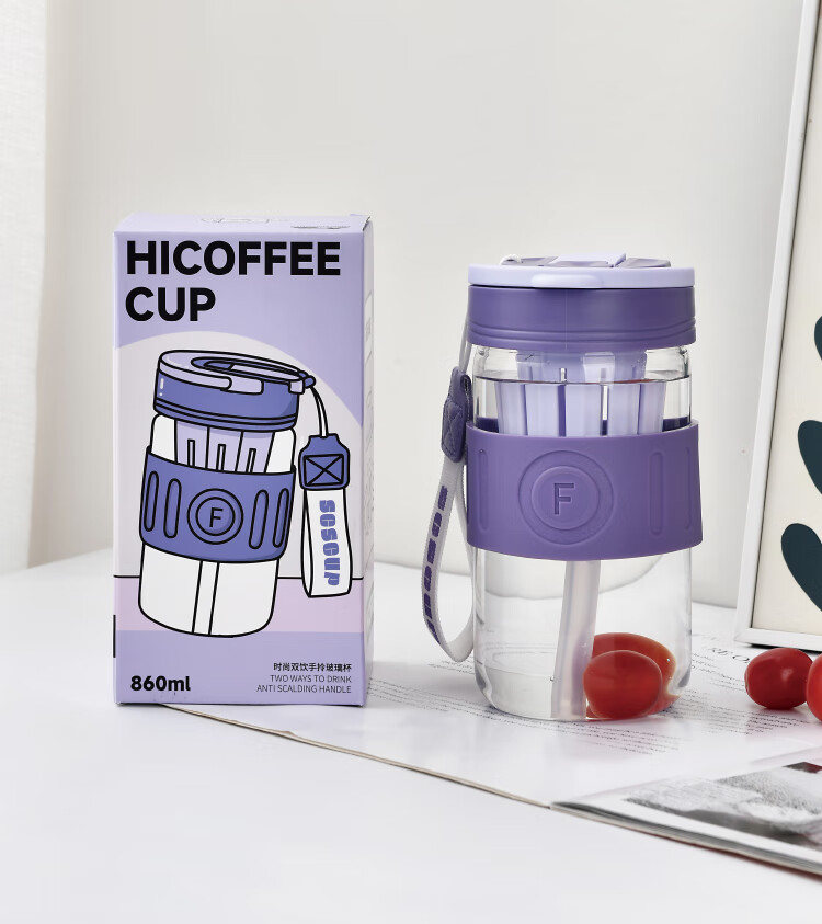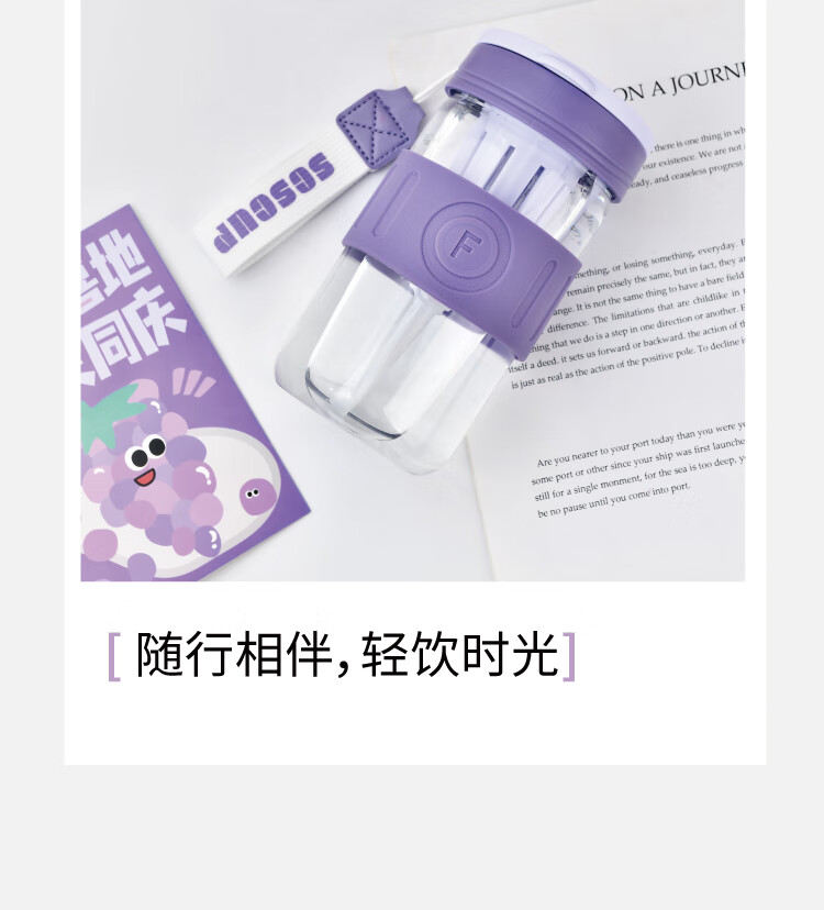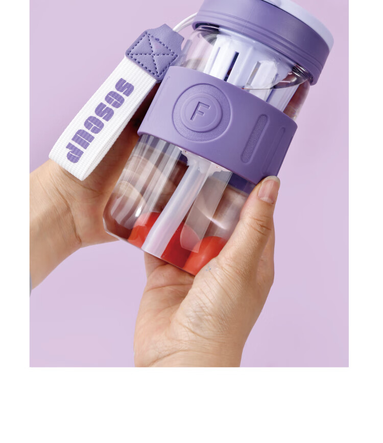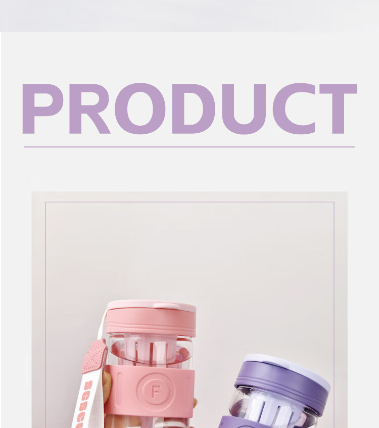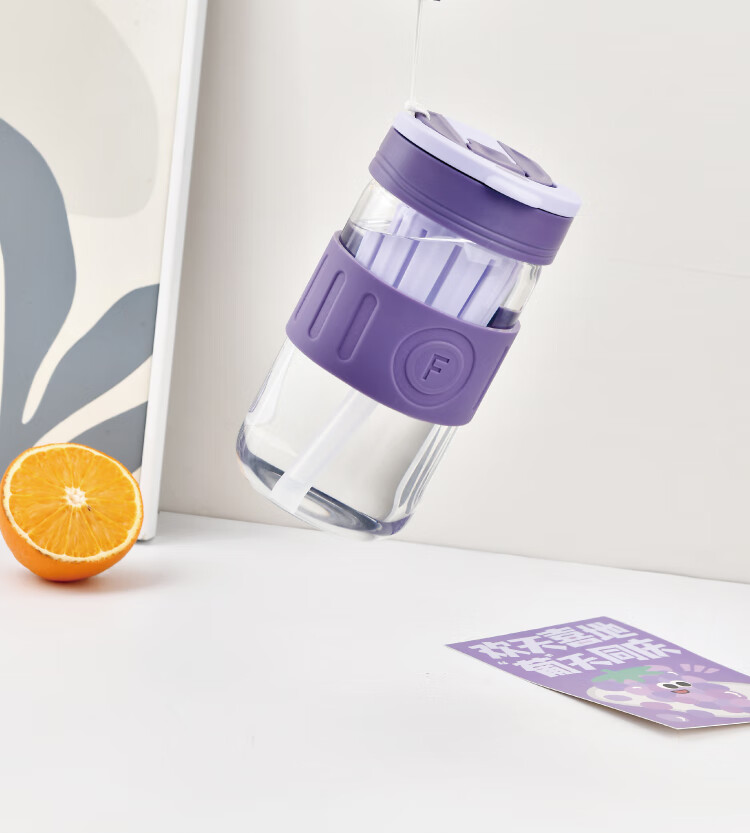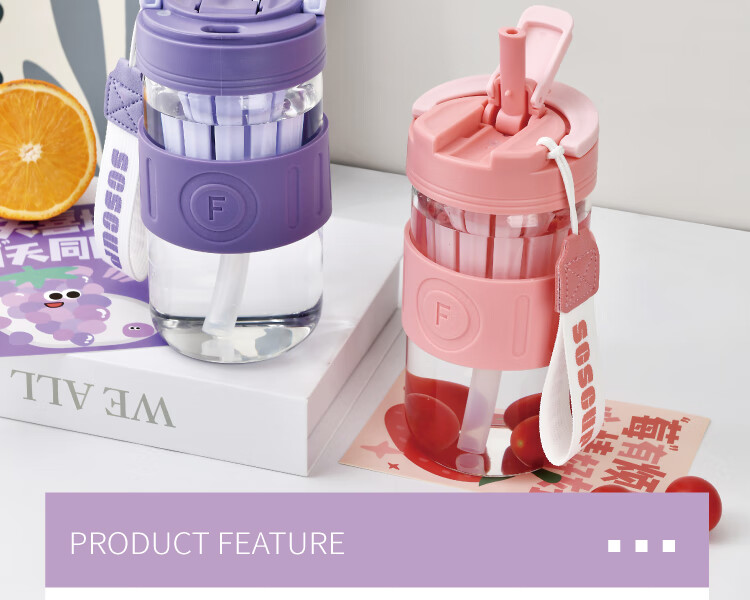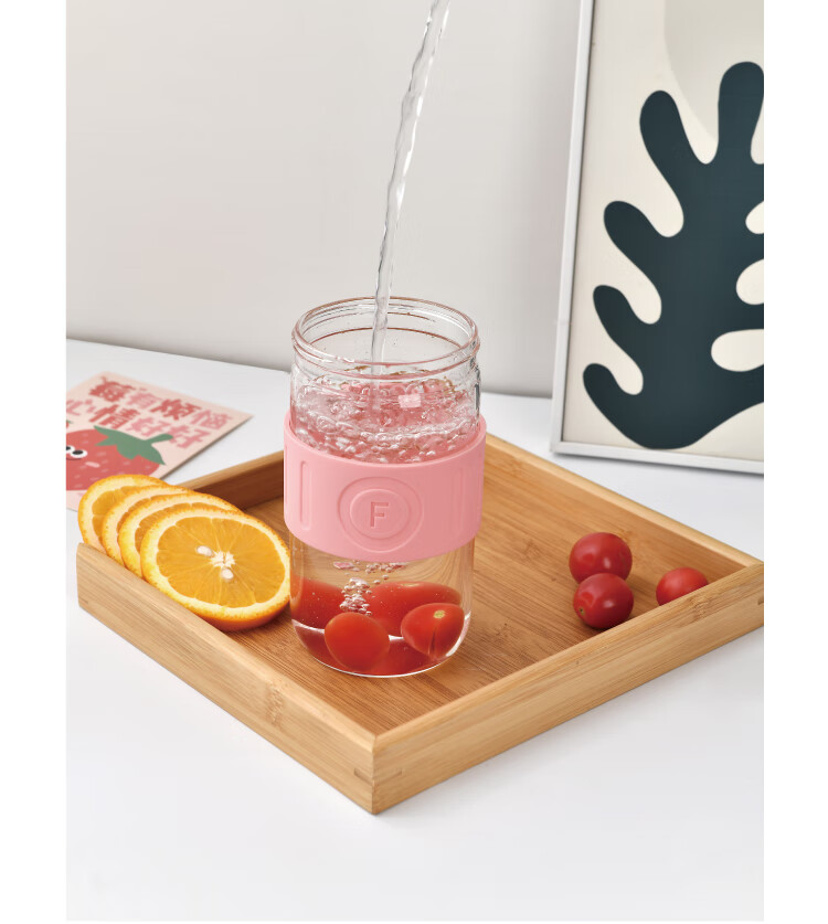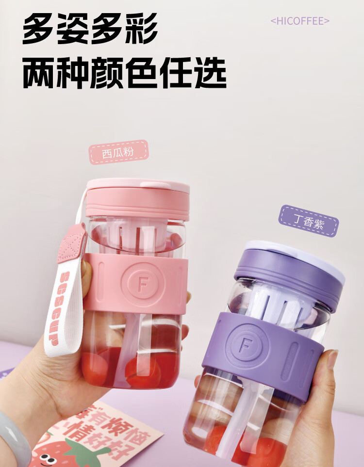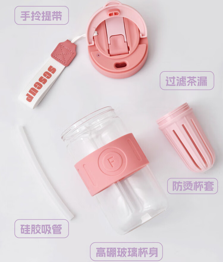 山重山水杯高颜值玻璃杯运动便携吸管杯双饮口泡茶杯子耐高温车载杯3161 粉色550ml【礼盒装】