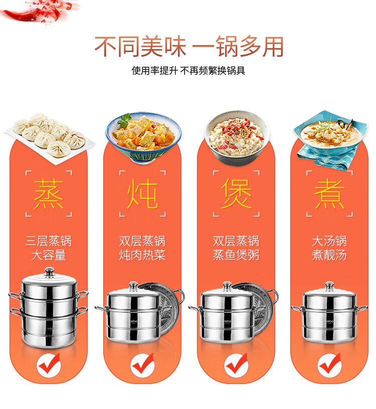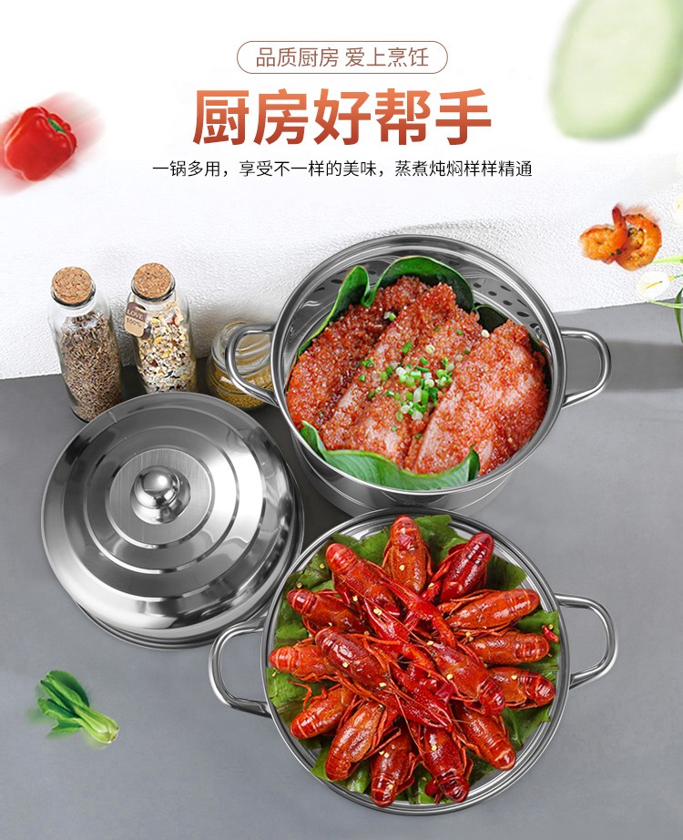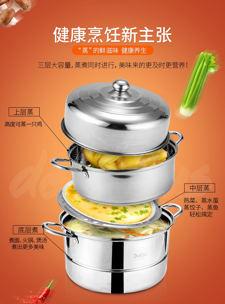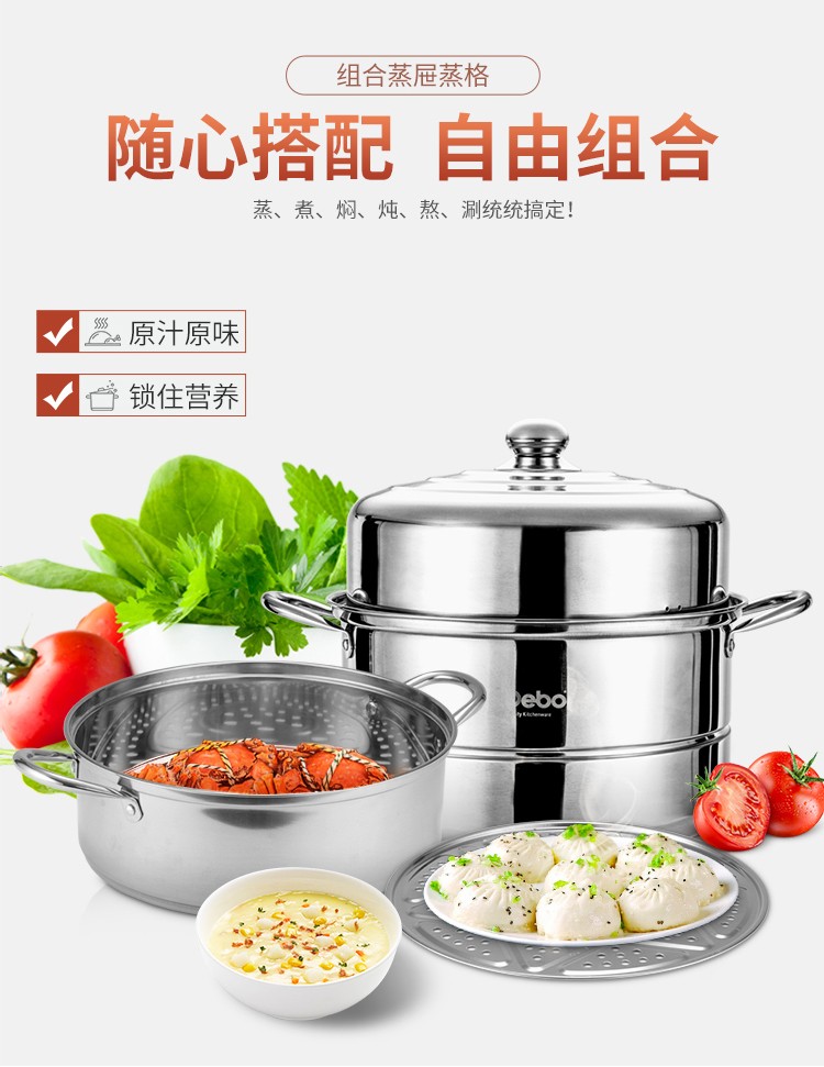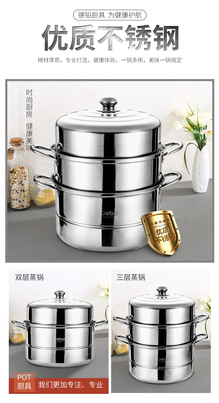 Debo 德铂蒸锅不锈钢多用锅大口径34cm燃气电磁炉通用 单底