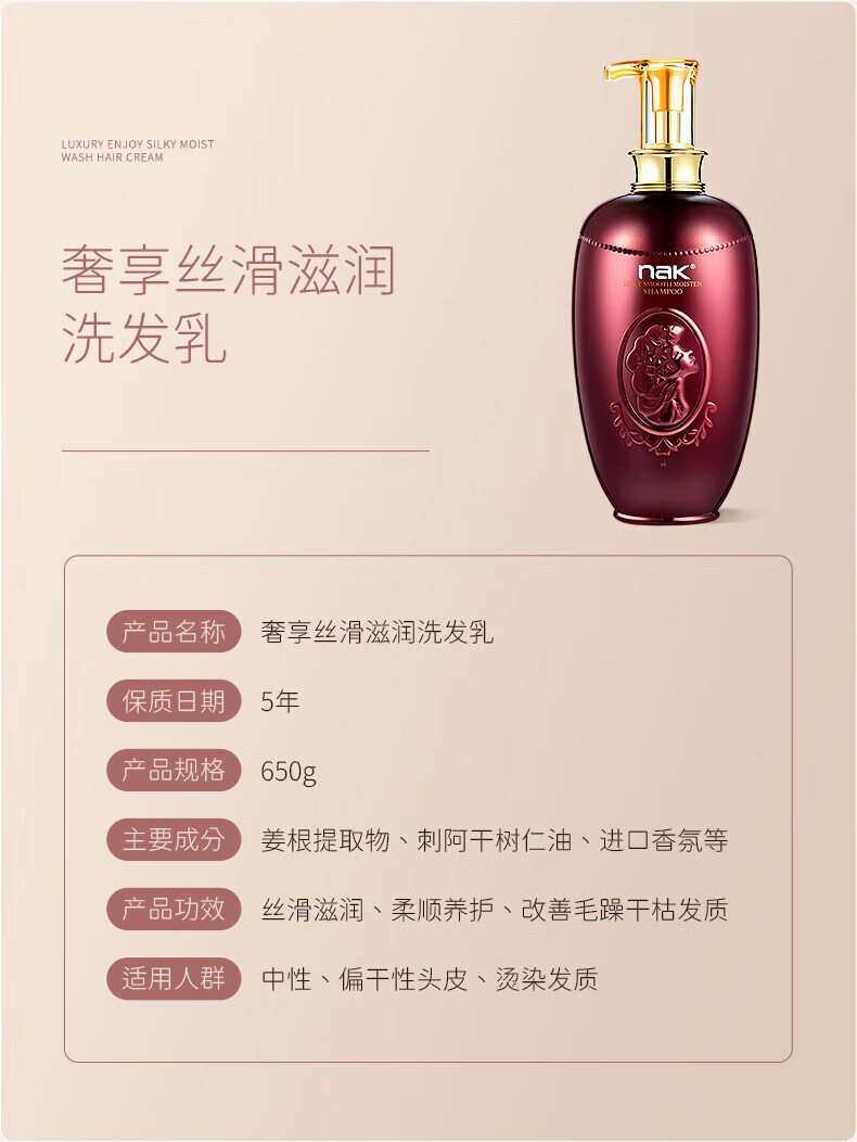 nak奢享丝滑洗发水乳液长时留香 护发洗发露 柔顺保湿洗头膏 奢享丝滑滋润洗发乳 650g 1瓶