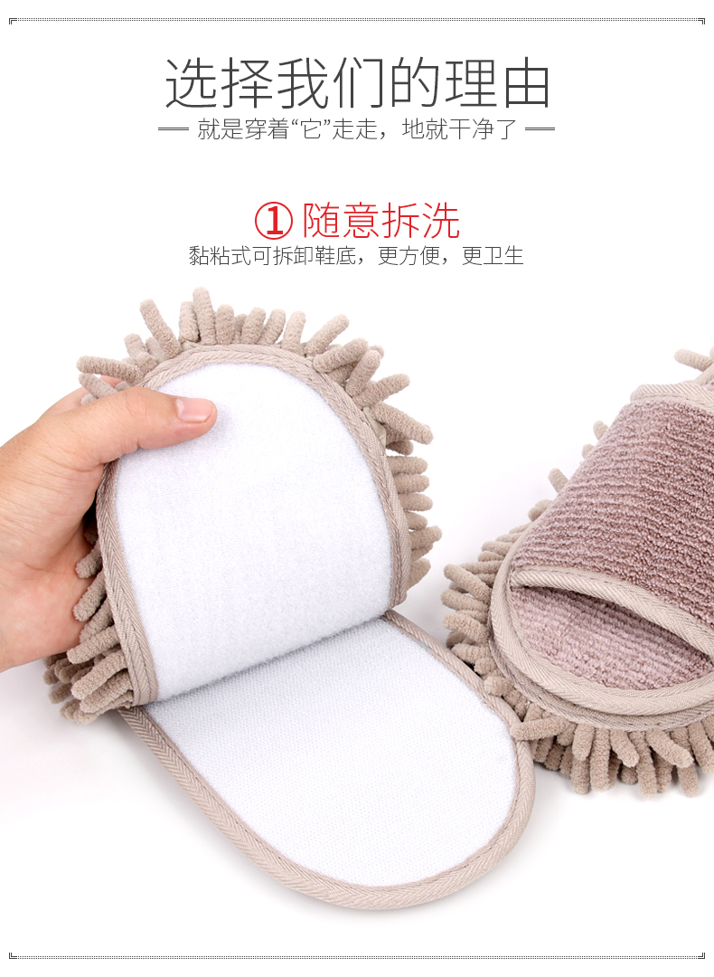 比思达(BIBEST)四季款擦地拖鞋懒人拖鞋雪尼尔可拆洗拖地擦地拖鞋 均码 蓝色