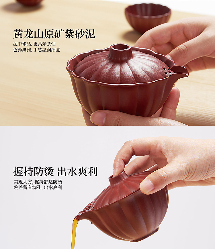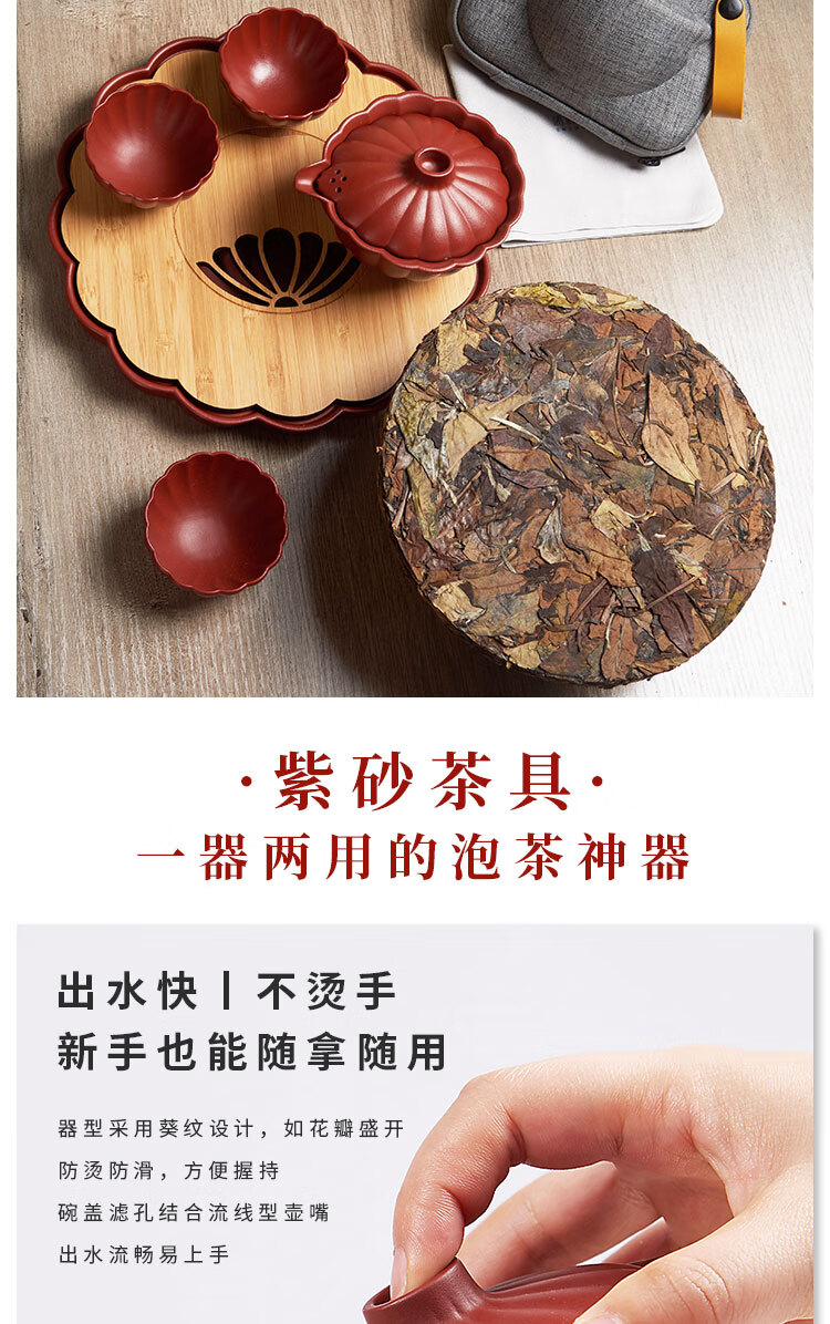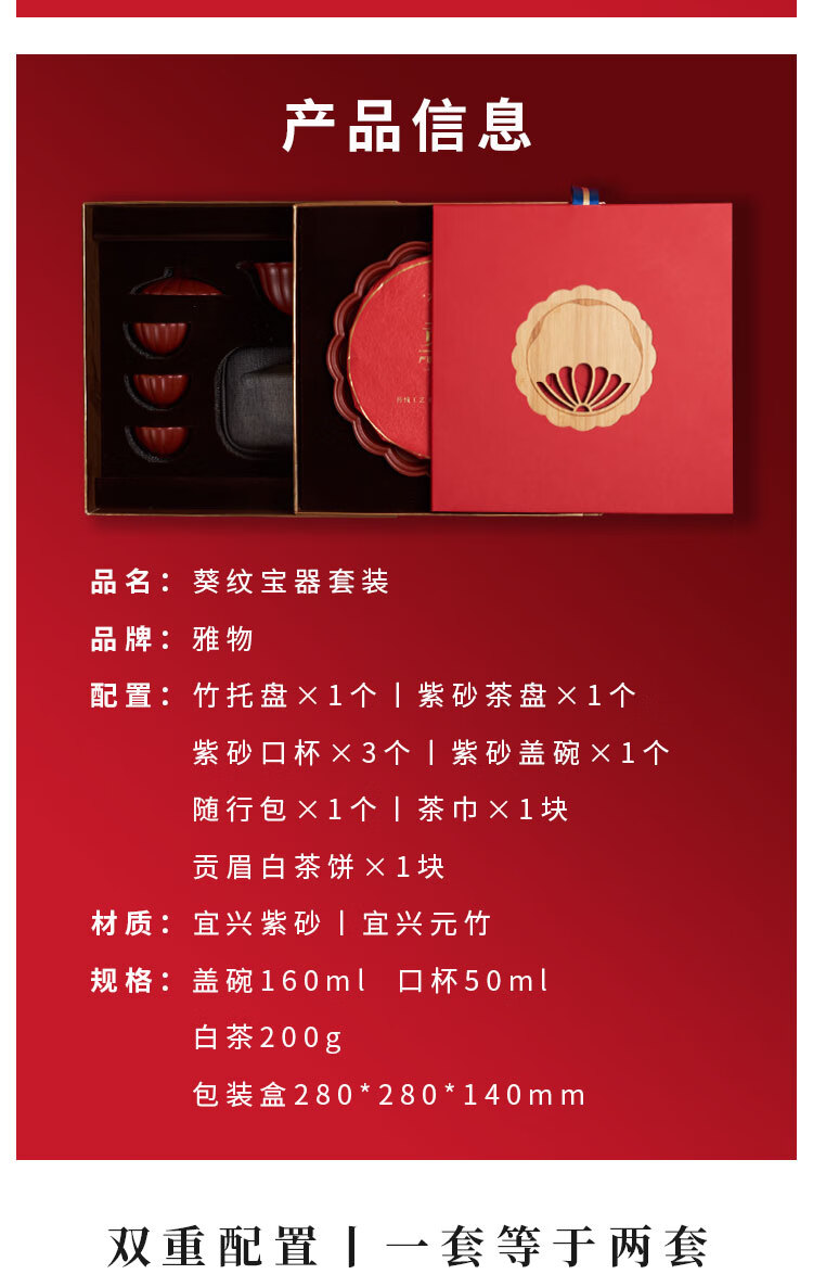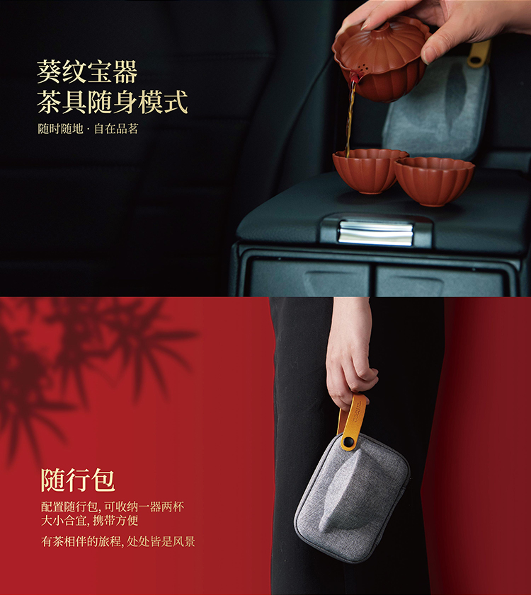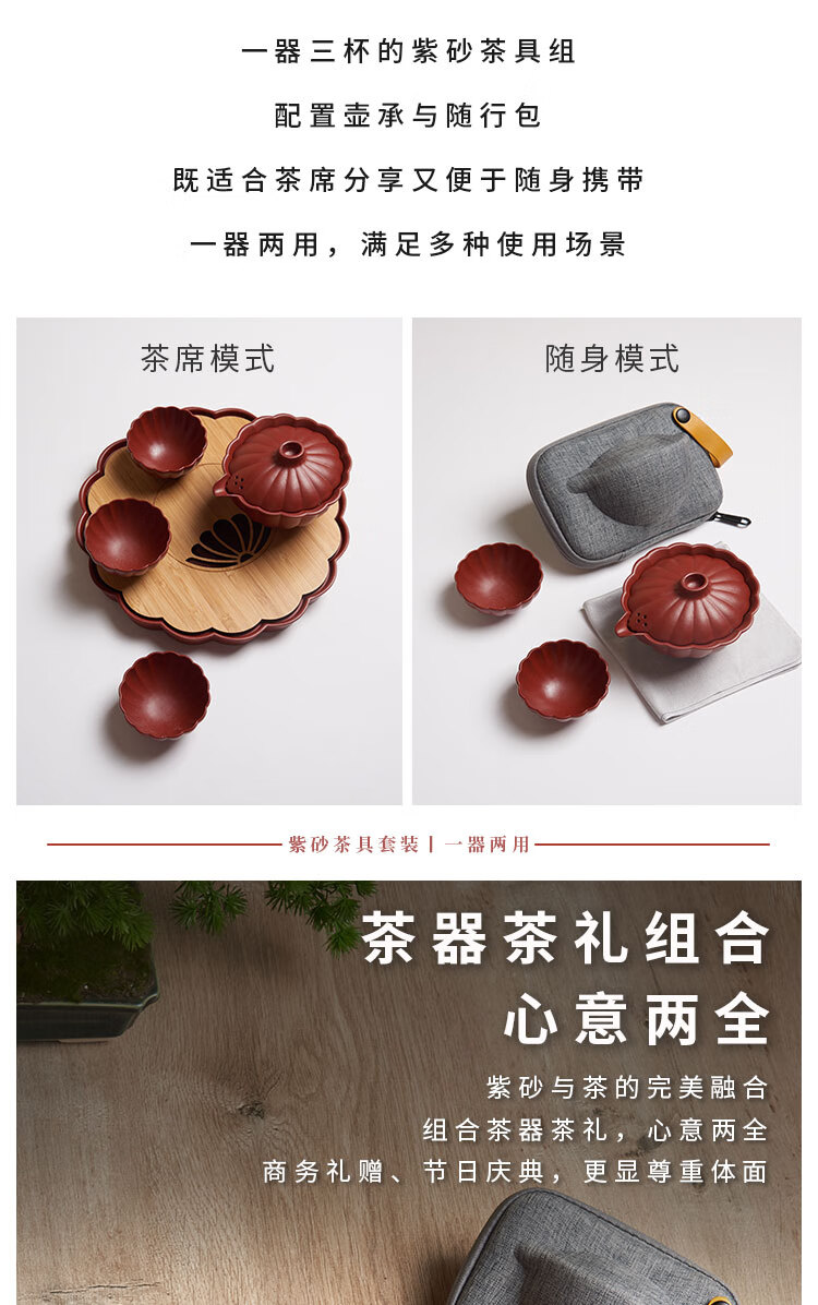 清朴堂中式便携旅行宜兴茶具紫砂杯子盖碗茶盘便携包茶器贡眉白茶茶饼套装商务礼品定制礼物礼品葵纹宝器套装