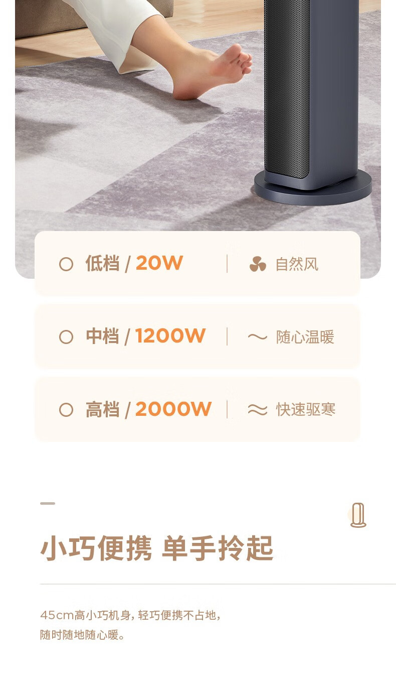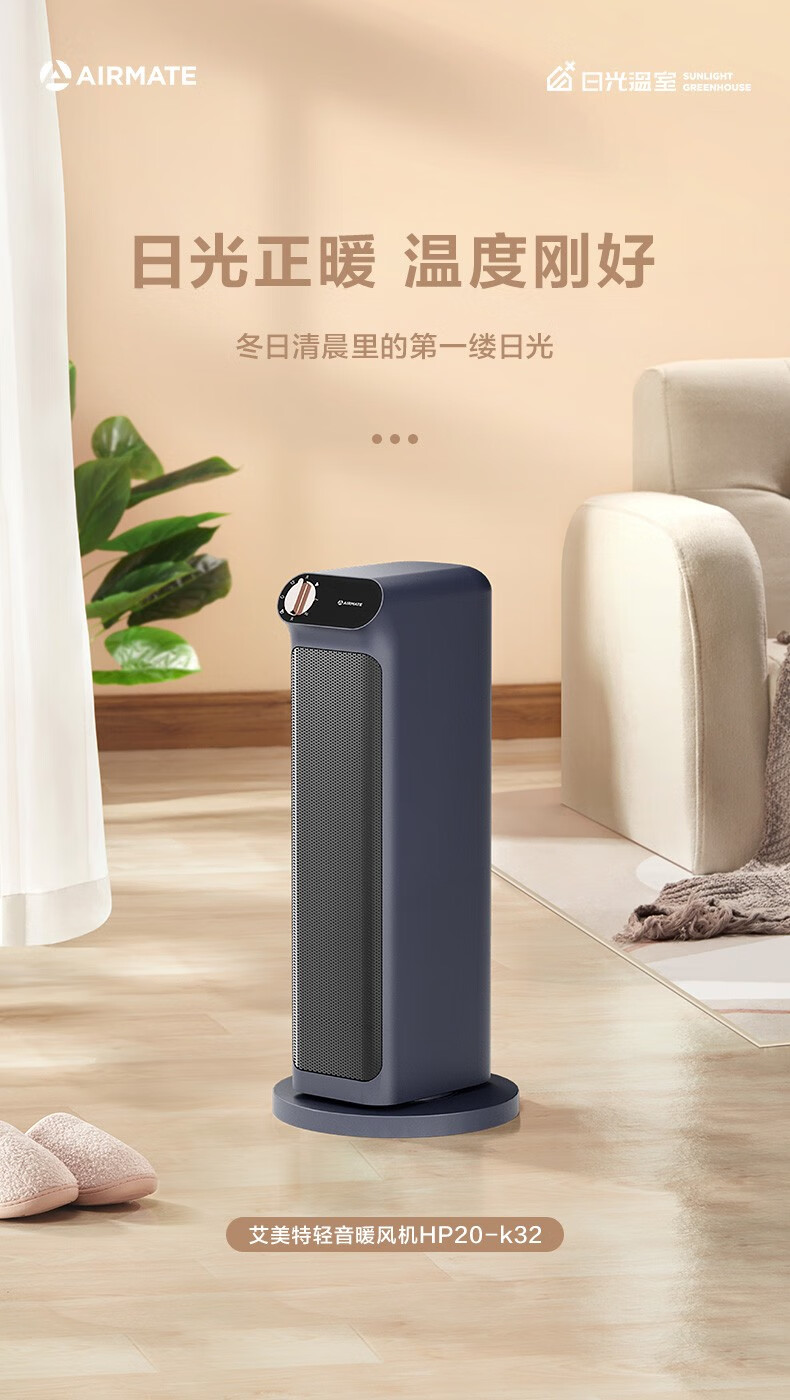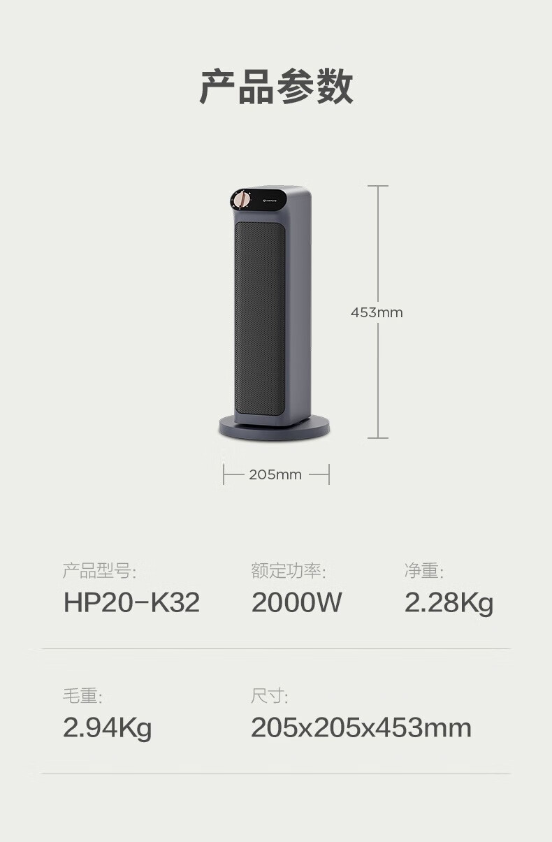 艾美特(AIRMATE) 取暖器电暖器家用塔式立式摇头暖风机可移动暖风机 中塔暖立方HP20-K32