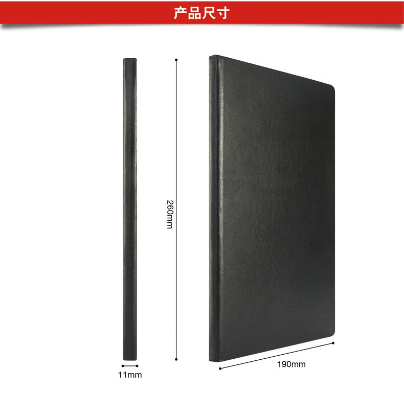 史泰博 平装PU仿皮笔记本 商务办公专用记事本会议记录本子日记本 16K 80页 黑色