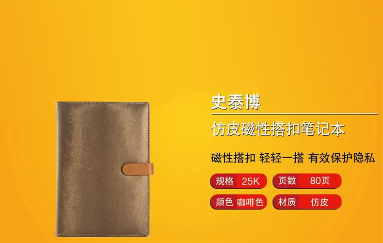 史泰博 仿皮磁性搭扣笔记本 商务办公专用记事本会议记录本日记本 25K 80页 蓝色