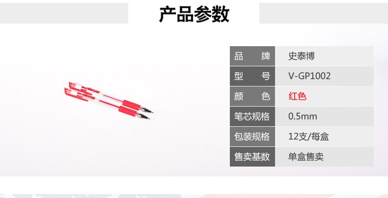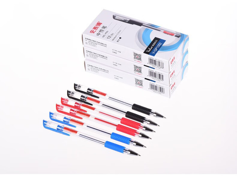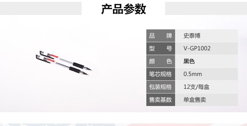 史泰博 直杆中性笔0.5mm水笔办公签字学生考试子弹头 舒适笔握中性笔 黑蓝红 V-GP1002 黑色单支