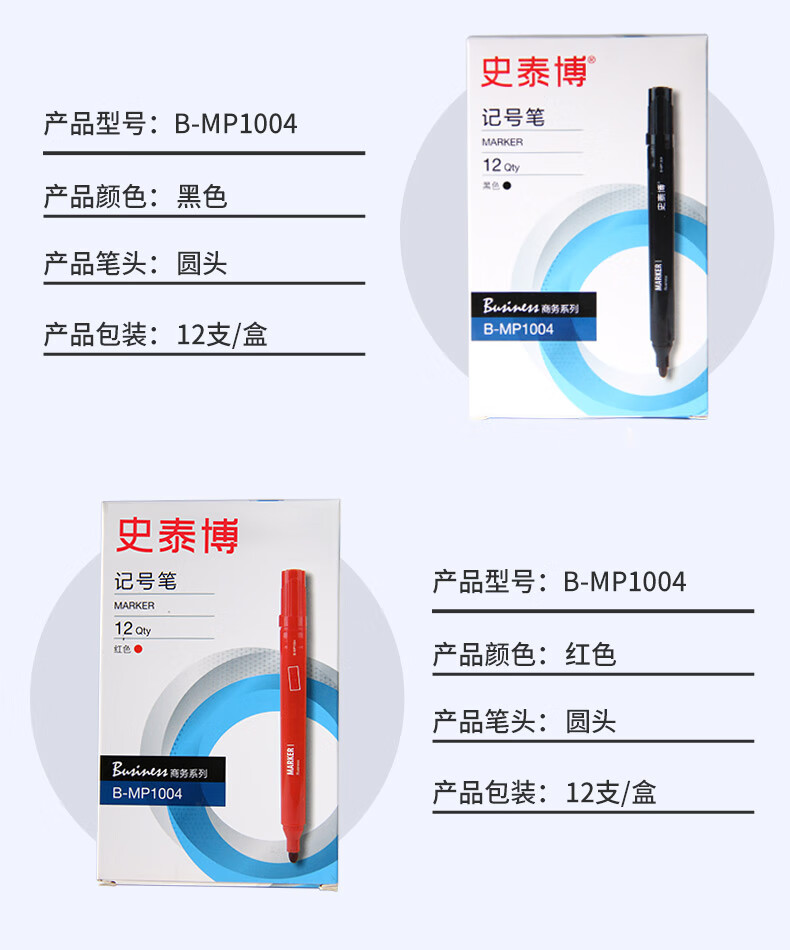 史泰博 油性记号笔圆头记号笔物流笔 防水笔不易掉色学生办公批发手账 AH319 双头记号笔 10支/盒 黑色