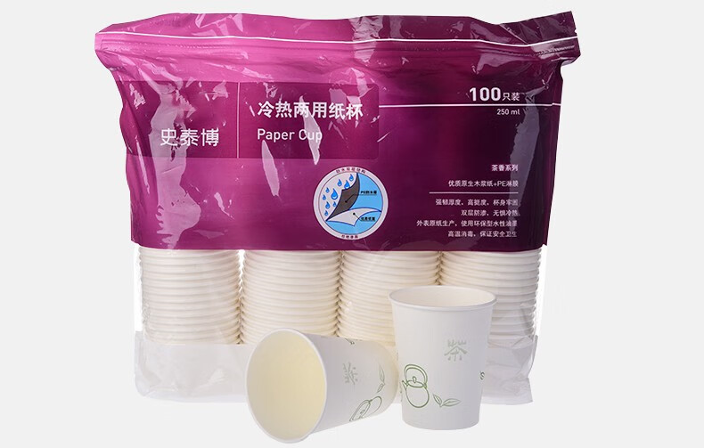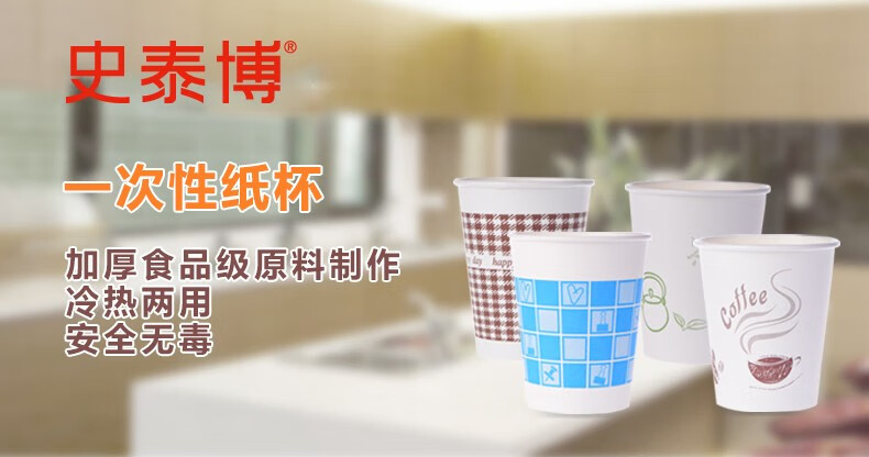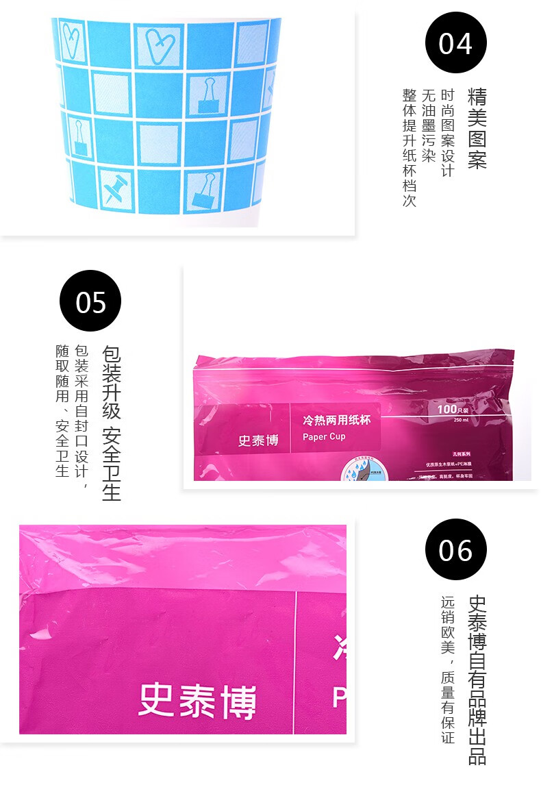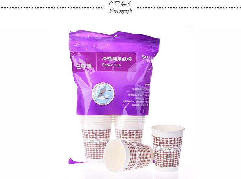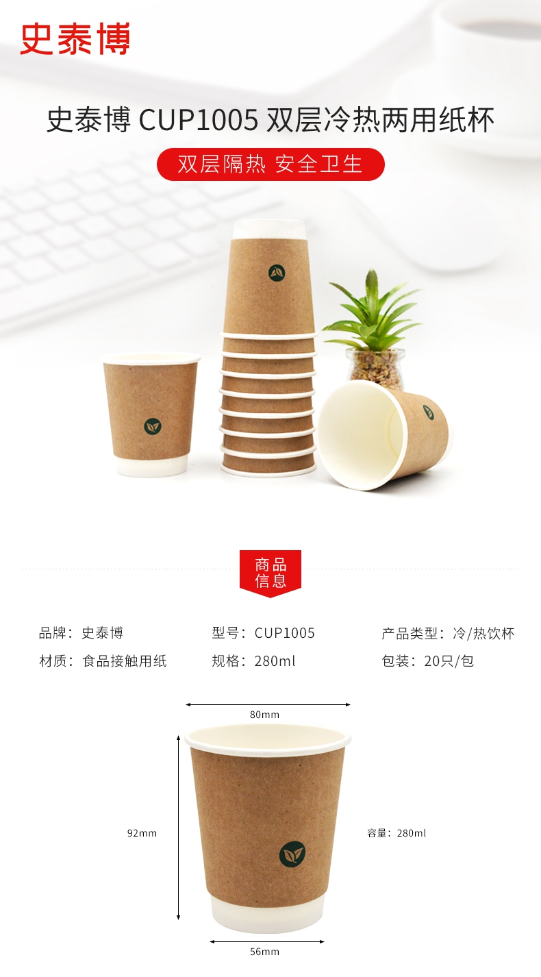 史泰博 纸杯/塑料杯 一次性加厚水杯 冷热两用隔热杯子 办公专用 CUP1000 格子图案 270ML/50只