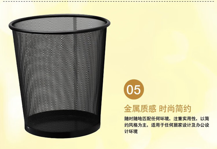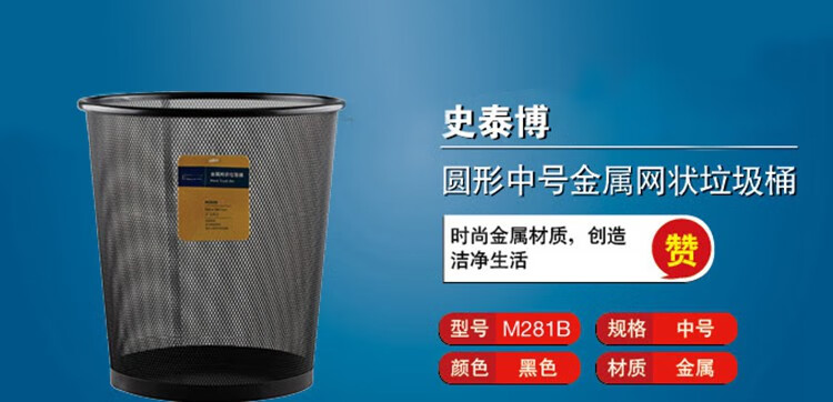 史泰博 金属网状垃圾桶 塑料垃圾桶 圆形方形纸篓垃圾桶家用办公 黑色 金属 圆形大号 29.5*35cm