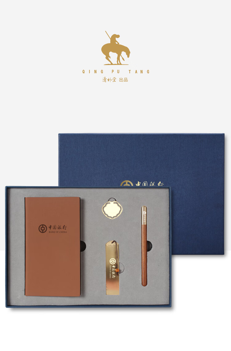 清朴堂知书套装商务礼盒实木笔红木笔铜制U盘年会礼品礼物可定制 四件套