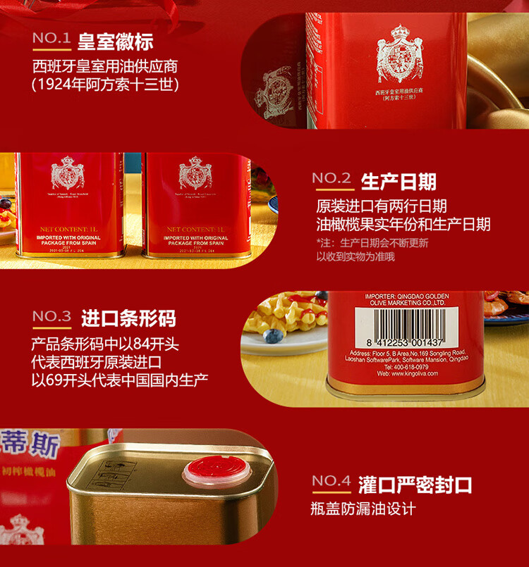 贝蒂斯(BETIS)食用油 特级初榨橄榄油1L*2礼盒 西班牙原装进口 团购送礼
