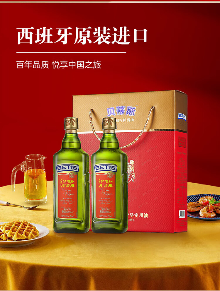 贝蒂斯(BETIS)食用油 特级初榨橄榄油750ml*2礼盒 西班牙原装进口