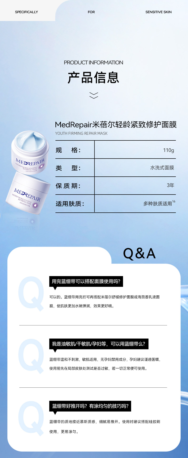 米蓓尔 轻龄紧致修护面膜 “蓝绷带”110g