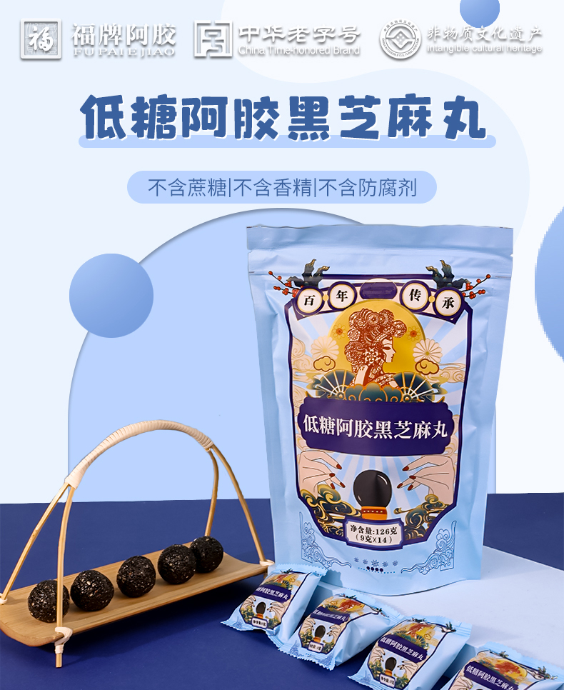 福牌低糖阿胶芝麻丸126g*3袋