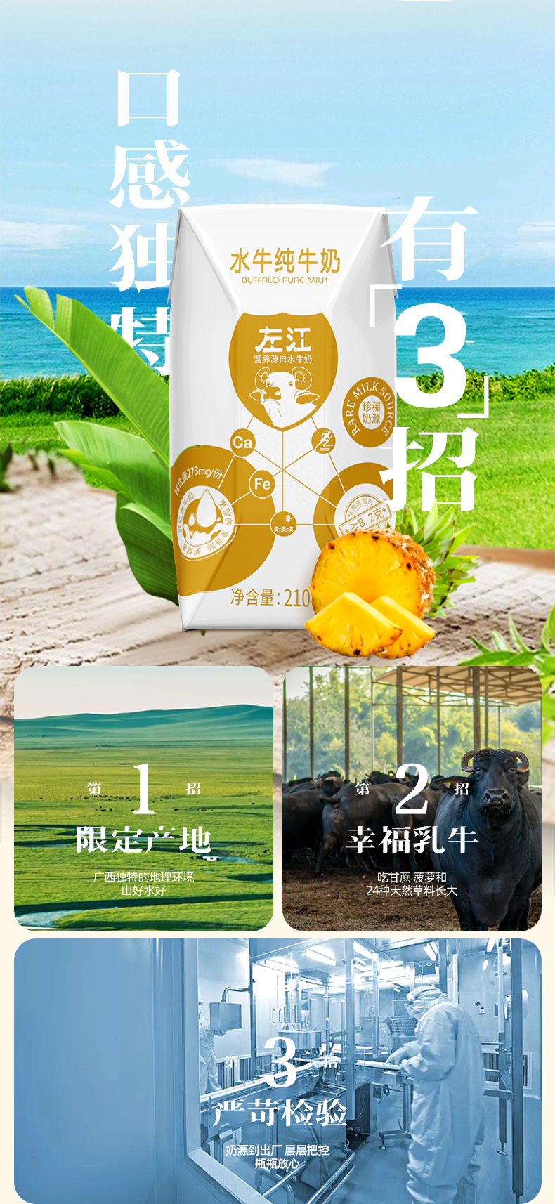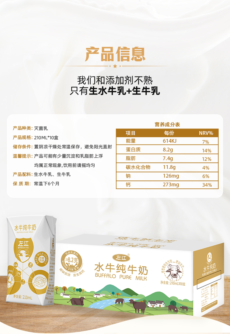 左江水牛奶纯牛奶210ml*10盒/箱