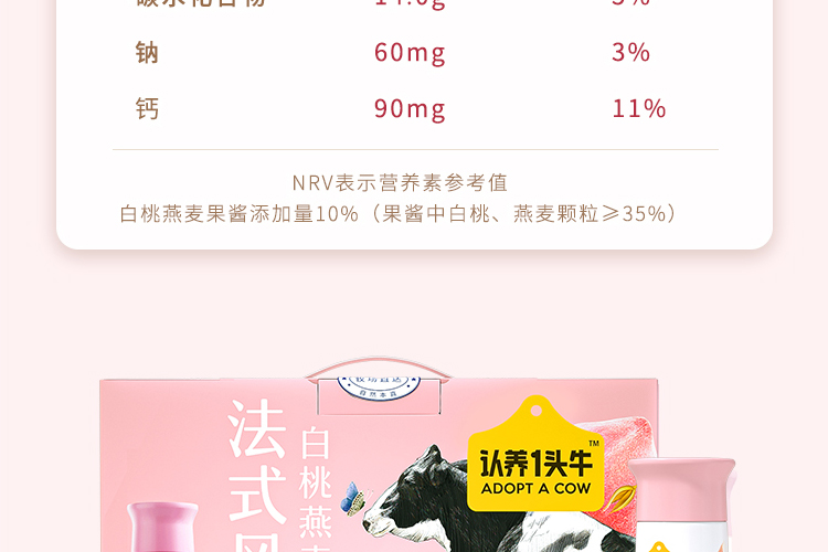 认养一头牛白桃燕麦味酸奶230GPET10入二提装