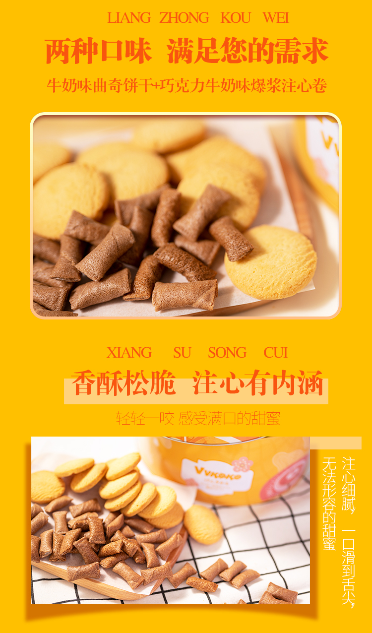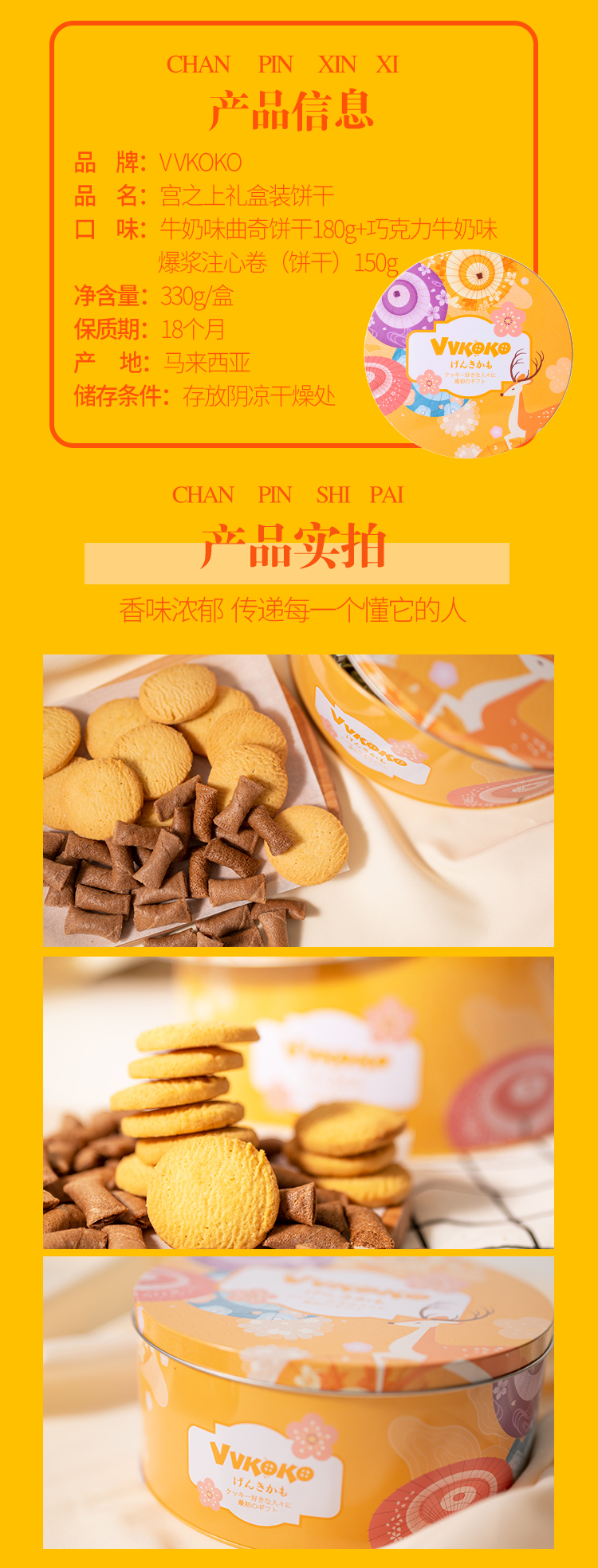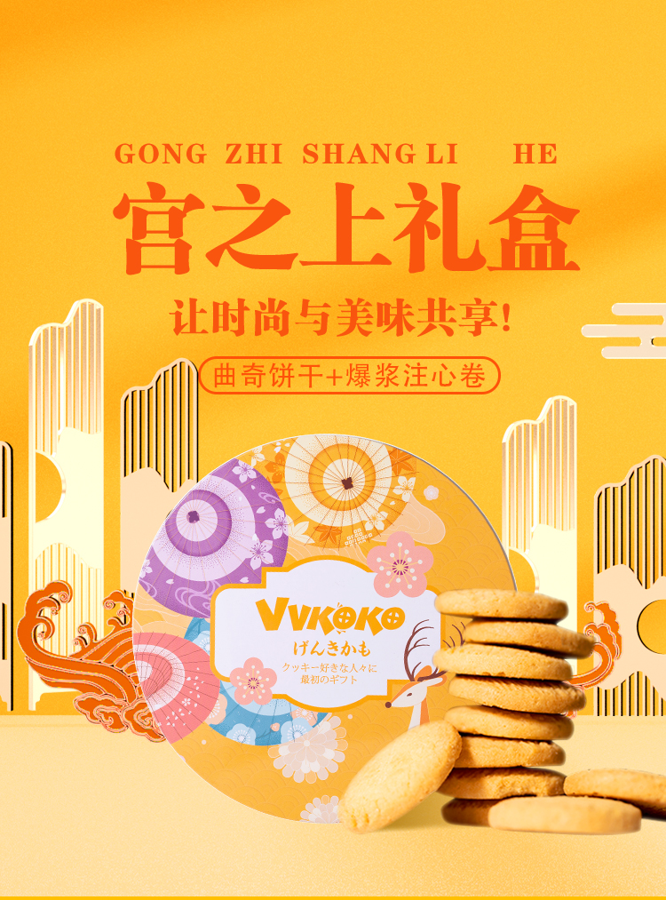 VVKOKO宫之上礼盒装饼干 (牛奶味曲奇饼干180g+巧克力牛奶味爆浆注心卷(饼干)150g)