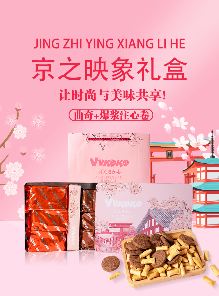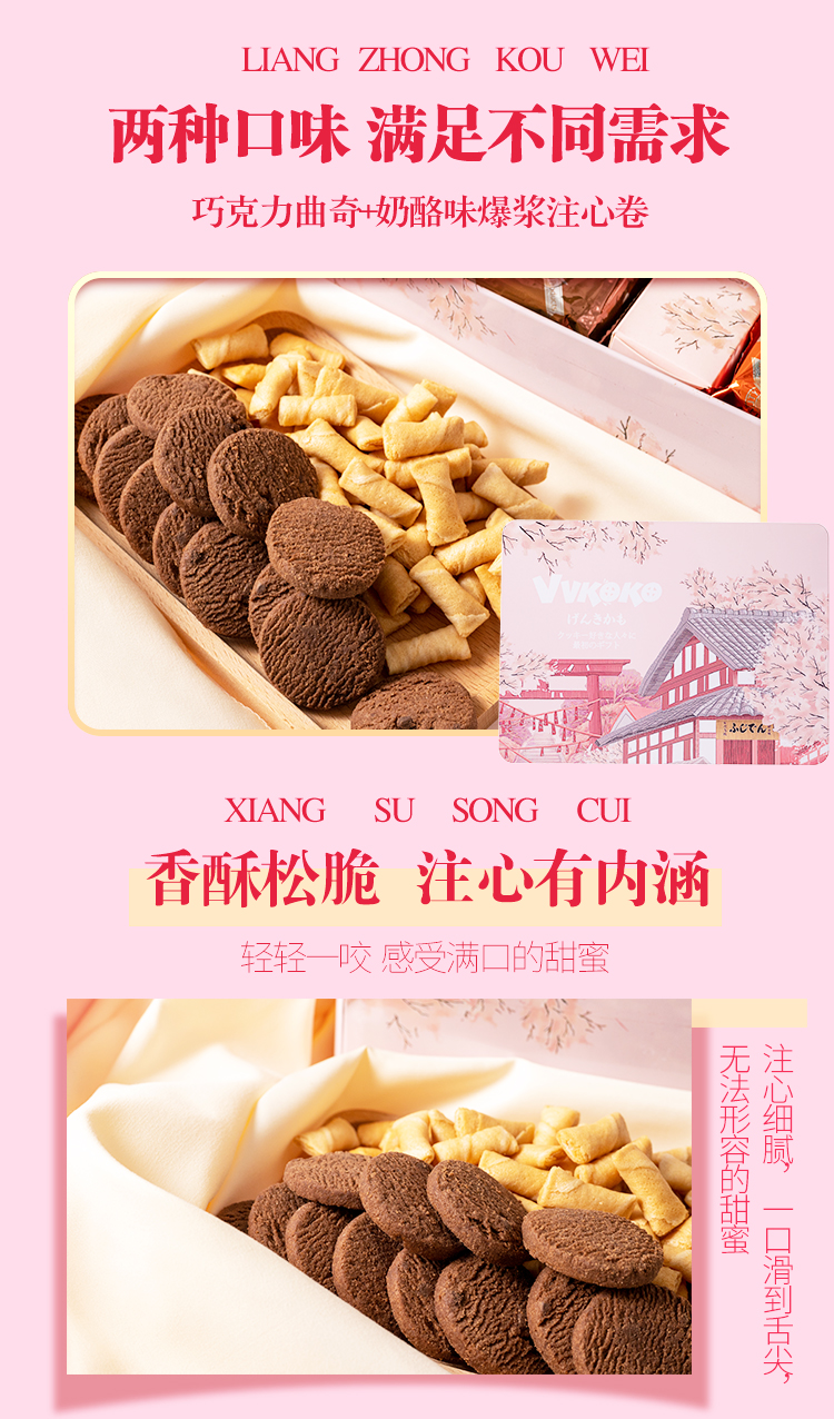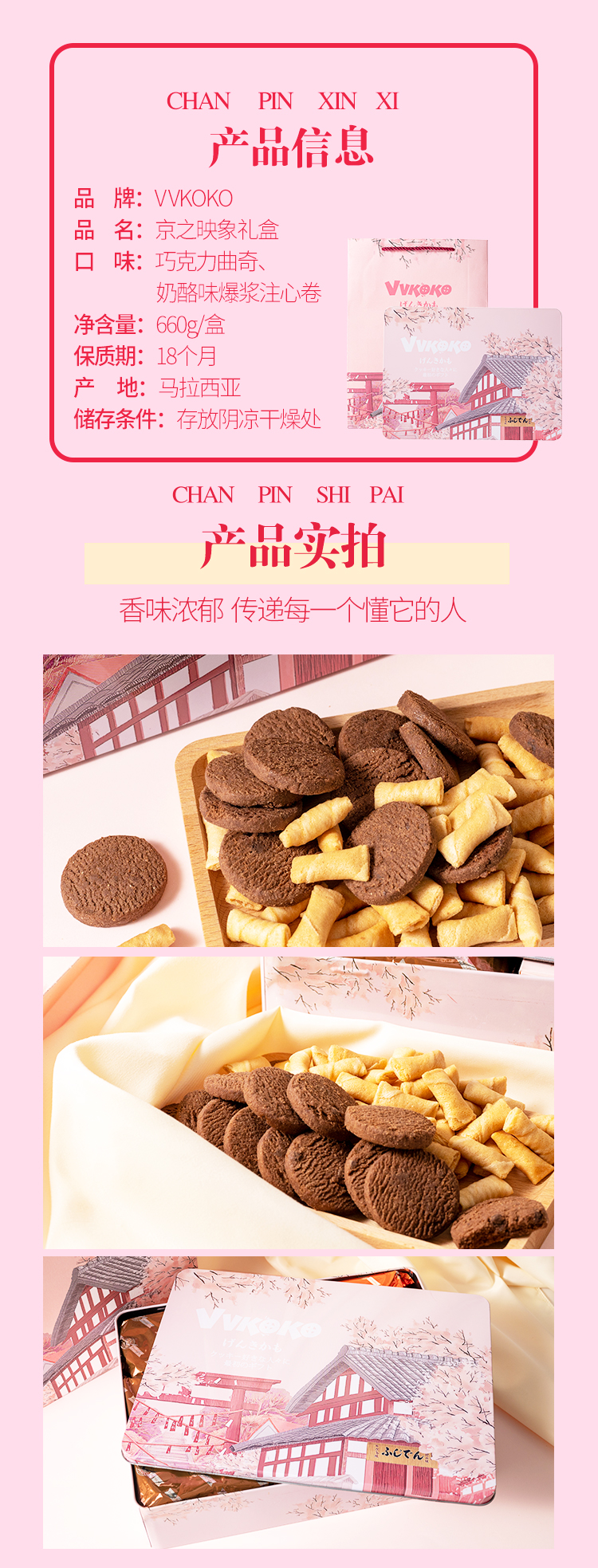 VVKOKO京之映象礼盒装饼干 (巧克力曲奇饼干360g+奶酪味爆浆注心卷(饼干)300g)